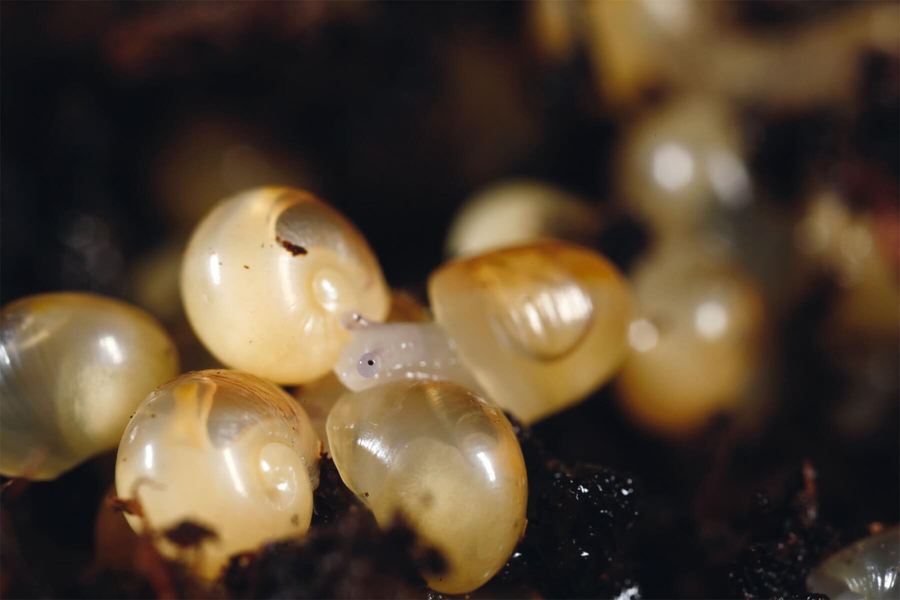 Les jeunes escargots naissent dans une obscurité tiède et humide. Mais entre frères cannibales et prédateurs en surface, le carnage est programmé.