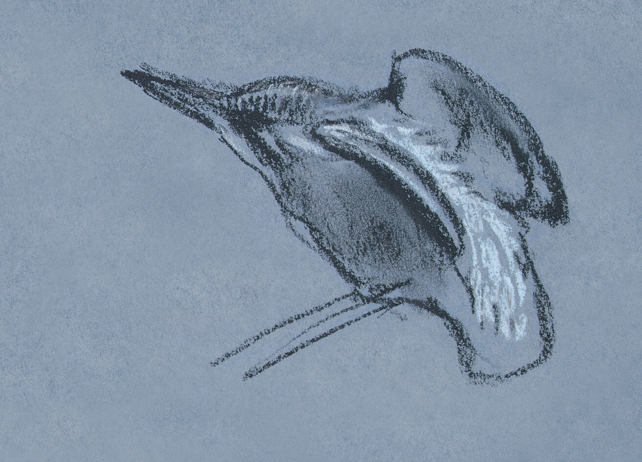Je dessine. Il montre sa tête, regarde à droite et à gauche, se toilette, s’étire et remet la tête dans son dos, côté gauche cette fois. Pendant une demi-heure, il ne bouge pas une plume. Ni mes coups de crayon, ni les sauts de quelques poissons à la surface de l’étang ne semblent le déranger.