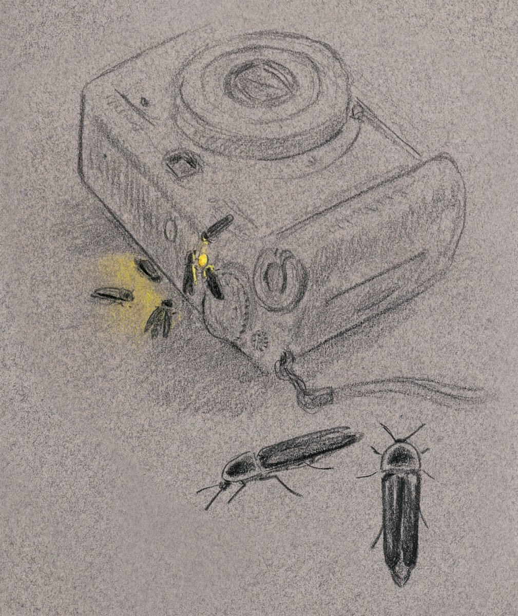 Deuxième virée nocturne, cette fois en pleine campagne, carnet de croquis dans une main et appareil photo dans l’autre. Nous sommes le 25 août, il est 21 h.