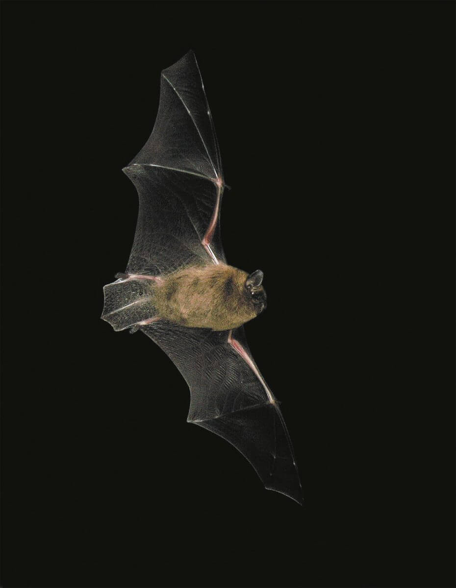 Espérant voir l’oiseau éclairé d’un rayon de lune, je vais photographier les chauves-souris qui volent sans cesse au-dessus de l’eau, puis reviens. Hélas, il est toujours dans l’ombre. Tant pis ! Au moins, c’est une bonne soirée pour les chauves-souris. Faciles à suivre grâce à la lune. Je fais une série de photos. C’est le flash qui me révèle les espèces (voir article Dix règles d'or de l'observation nocturne).