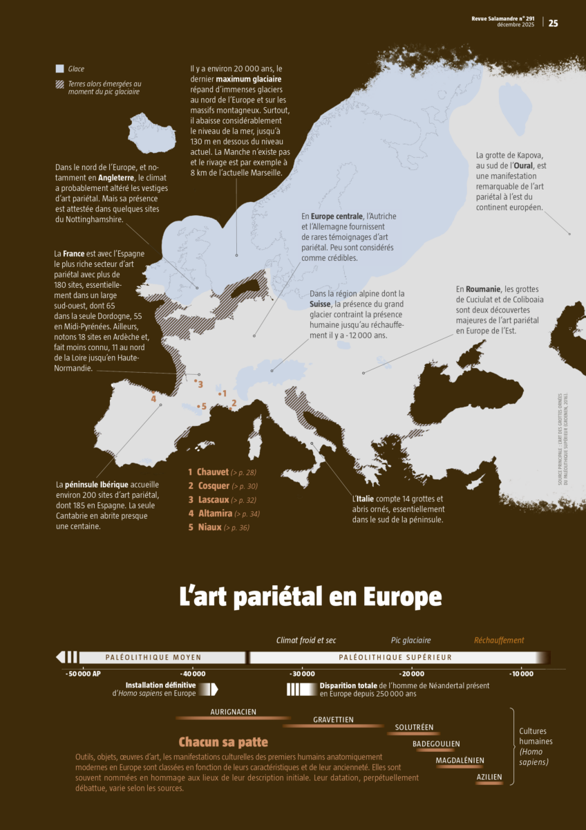 n° 291 Décembre 2025 - Janvier 2026, article initialement paru sous le titre "À l'écart des grands glaciers, l'art pariétal s'est développé dans le sud de l'Europe"