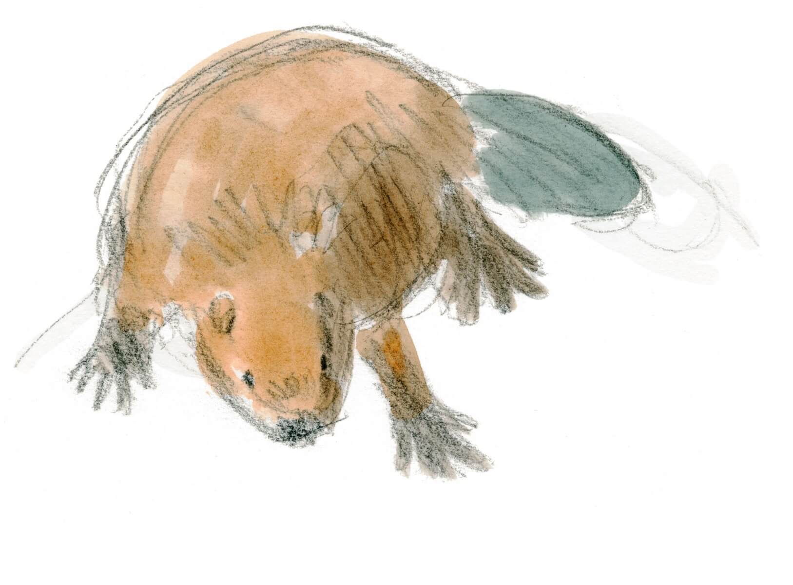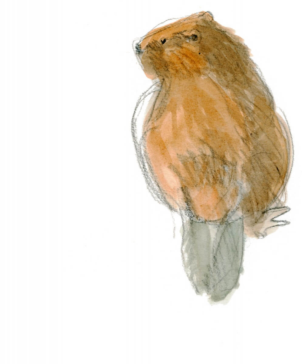 De ma jeunesse d'arbre, je garde le souvenir d'un joyeux va-et-vient sur l'onde, d'un chantier éternellement recommencé, de jeux au fond d'un terrier qui chatouillaient mes racines. Autrefois, des castors peuplaient ma rivière. Contrairement à ce que croyaient les hommes, ces nageurs à poils ne se gavaient pas de poisson mais plutôt d’herbes, de feuilles, de bourgeons et d’écorce. En sécurité dans l’eau, ils venaient à terre chercher leur nourriture. Là, ils prenaient l'allure de campagnols géants.