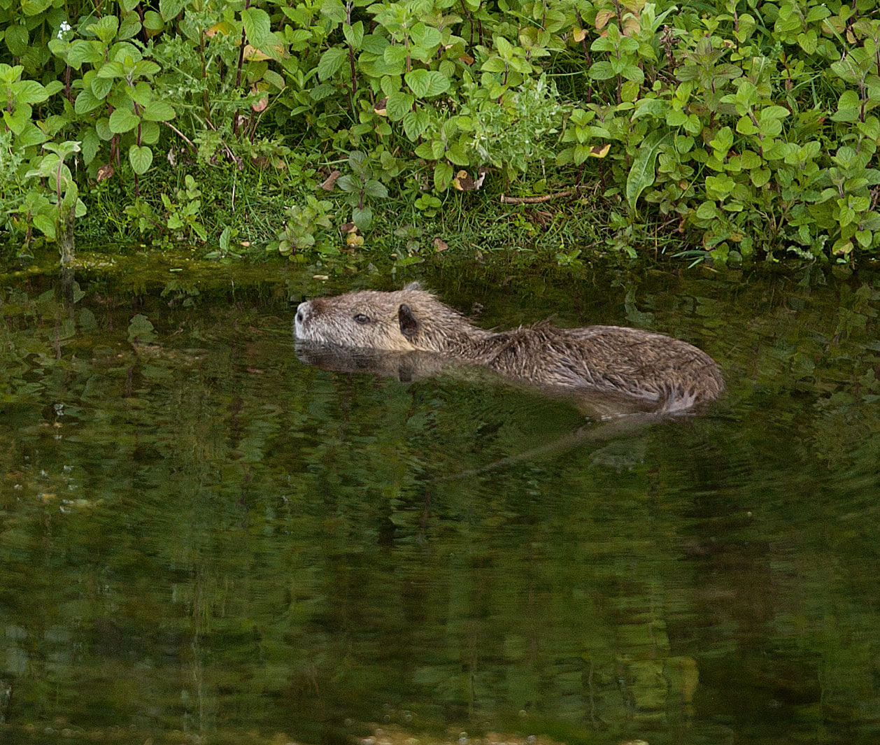 A droite du castor apparaît sur cette extraordinaire photo son cousin ragondin. Introduit en Europe au XIXe siècle, ce rongeur originaire d'Amérique du Sud est doté d'une queue fine. Il a la tête plus grise, les joues fauves et les moustaches blanches. Il est aussi deux à trois fois moins lourd que son cousin. Seuls des hivers rigoureux limitent son expansion. En France, il est établi dans 70 départements. En Suisse, il n'a été observé qu'à quelques reprises.