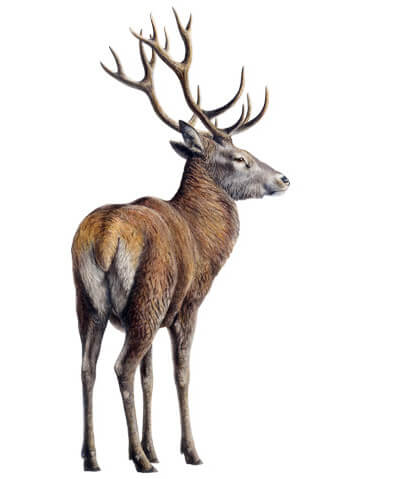 Lisez maintenant l'article dont est tiré ce dessin, et comparez le cerf avec son cousin, le chevreuil.