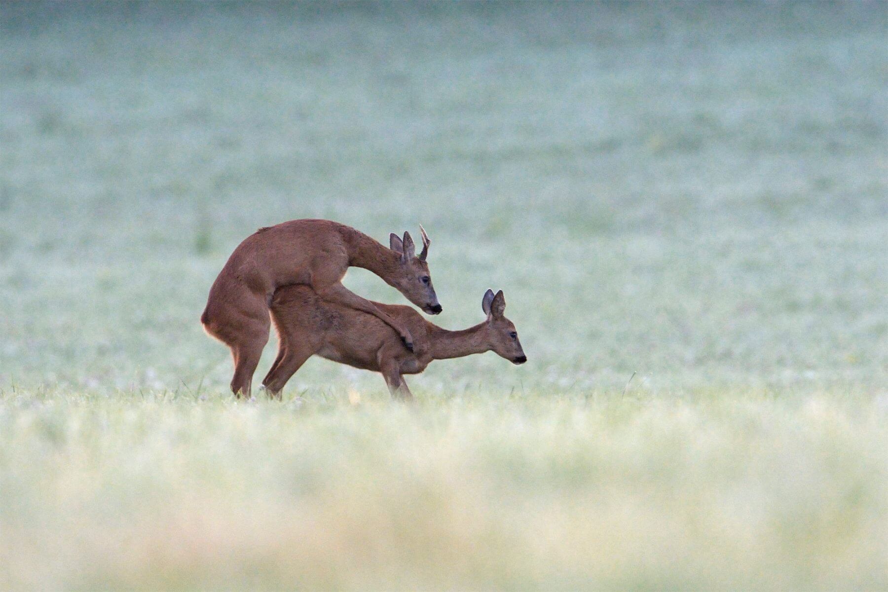 Avant de se laisser couvrir, celle-ci prolonge la fête par une folle danse répétée encore et encore autour d’une souche ou d’un buisson. Après des mois d’attente et de défense territoriale, le brocard monte enfin sa première chevrette. Mais pendant les deux jours que dure l’ovulation, elle s’accouplera avec plusieurs partenaires.