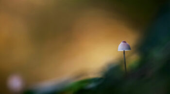 Lorsque l’œil accroche enfin un champignon, je m’en approche. Et comme pour tout sujet en macrophotographie, je tourne autour, je cherche le meilleur angle, un arrière-plan satisfaisant, une belle lumière, une ambiance particulière. Pour cela, il faut parfois se contorsionner, s’allonger dans la terre, se relever les cheveux pleins de feuilles mortes, peu importe. Mais la récompense est gratifiante. C’est la lumière qui passe au travers de lamelles cachées sous un grand chapeau marron ou la silhouette floue d’une feuille de houx qui rappelle celle d’une chauve-souris. L’ingrédient principal, dont on ne peut pas se passer, c’est l’émotion. Lorsque l’on est saisi par ce que l’on découvre dans le viseur, il faut déclencher. Pour ma part, ce qui me touche le plus, ce sont les couleurs, la façon dont elles pourront se mélanger les unes aux autres, surtout si l’on choisit une faible profondeur de champ.