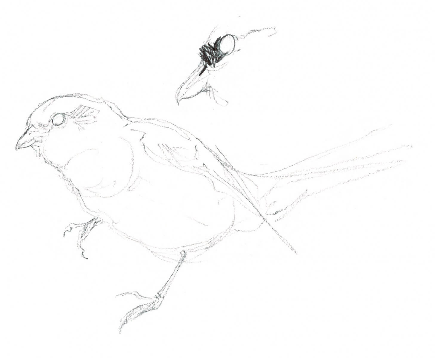 Je retrouve un mâle – peut-être celui-là même que j'ai observé en juin – posé dans un roncier près du sol. Dans son bec, un criquet des mouillères. D'un vol sûr et direct, l'oiseau rejoint la branche morte de l'aubépine, son perchoir favori. Aussitôt sa proie avalée, le chasseur reprend sa séance d'observation, puis replonge. D'un bref plané entrecoupé de battements d'ailes, il fond sur sa proie. Arrivé à quelques centimètres du sol, il « papillonne » un instant sur place, peut-être pour mieux localiser ou identifier sa victime. Il a fait mouche ! Une heure plus tard, je le vois saisir un bourdon sur la route. Trop à découvert à son goût, il regagne immédiatement son poste d'affût.