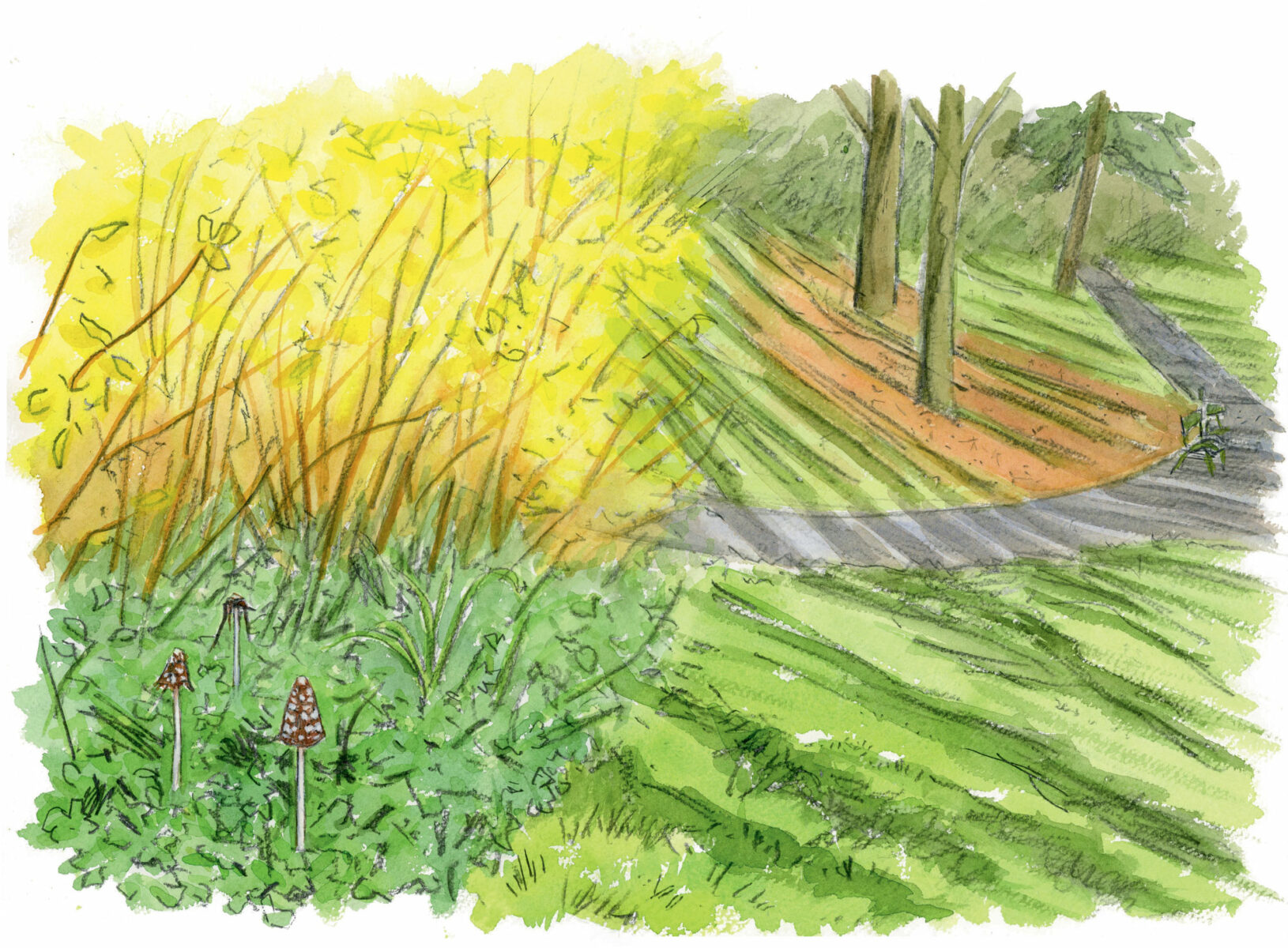 C’est dans l’espoir de nouvelles découvertes de ce genre que j’arpenterai cet automne encore les îlots de verdure parisiens. Avec, en guise de couteau et panier, des pinceaux et un bloc de papier.