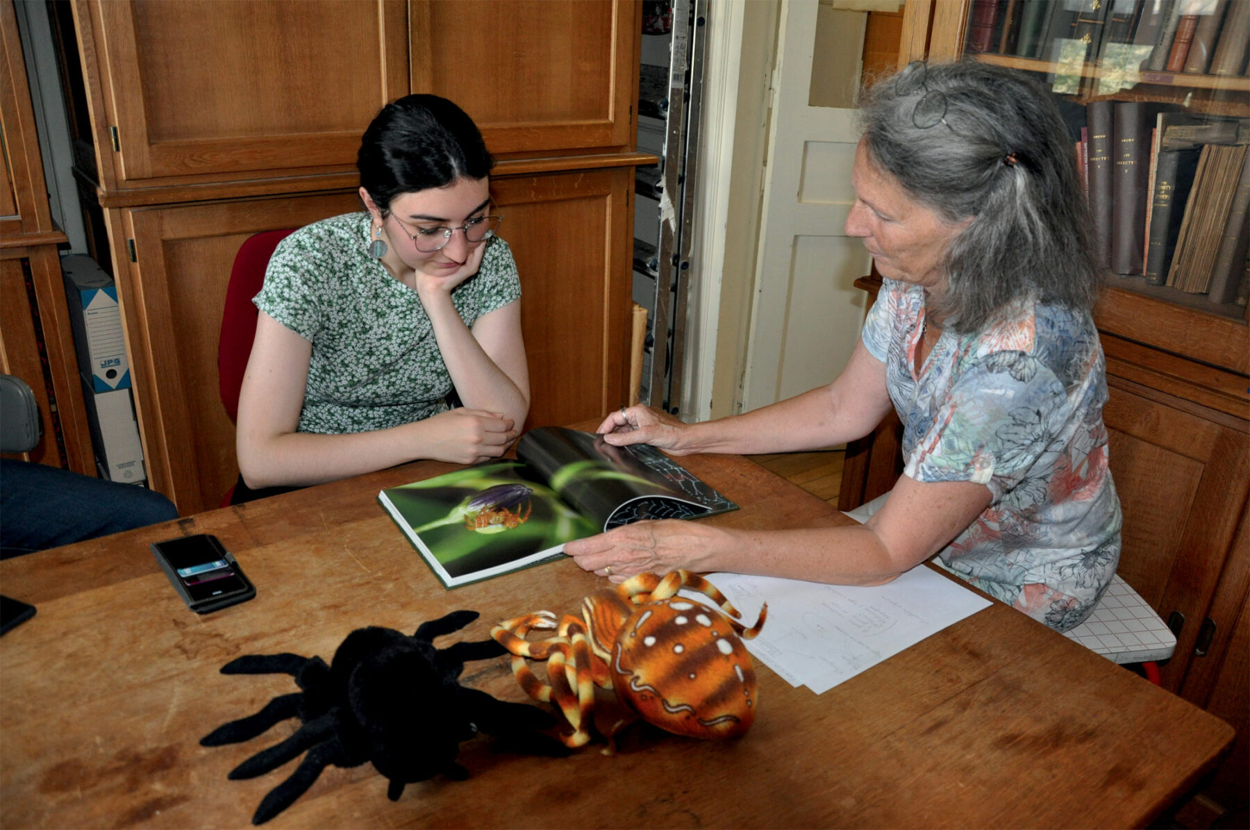 Tout en griffonnant, l’experte confirme que ces animaux ont huit pattes, ce qui les différencie des insectes, et qu’elles sont rattachées à l’avant d’un corps en deux parties. Ils sont dotés de filières productrices de soie à l’arrière et de crochets à l’avant, etc. La professeure en profite pour casser les fausses idées qui ont la peau dure. La volontaire ne manifeste plus aucun signe physique de stress et pose des questions. Même le dessin final, pourtant devenu extrêmement réaliste, ne l’effraie pas ! La spécialiste tente alors de lui montrer des photos d’araignées et des peluches. Tout va bien, on dirait. Passons à l’étape suivante.
