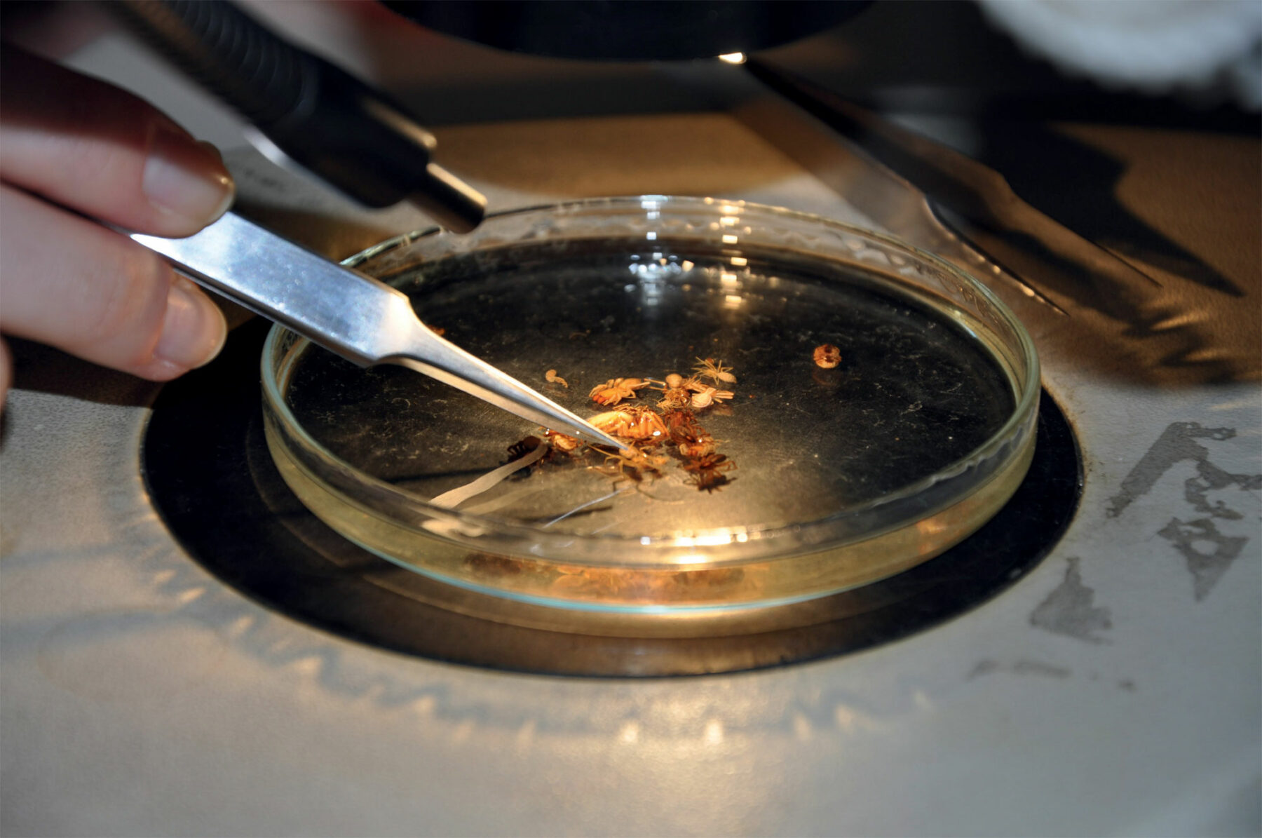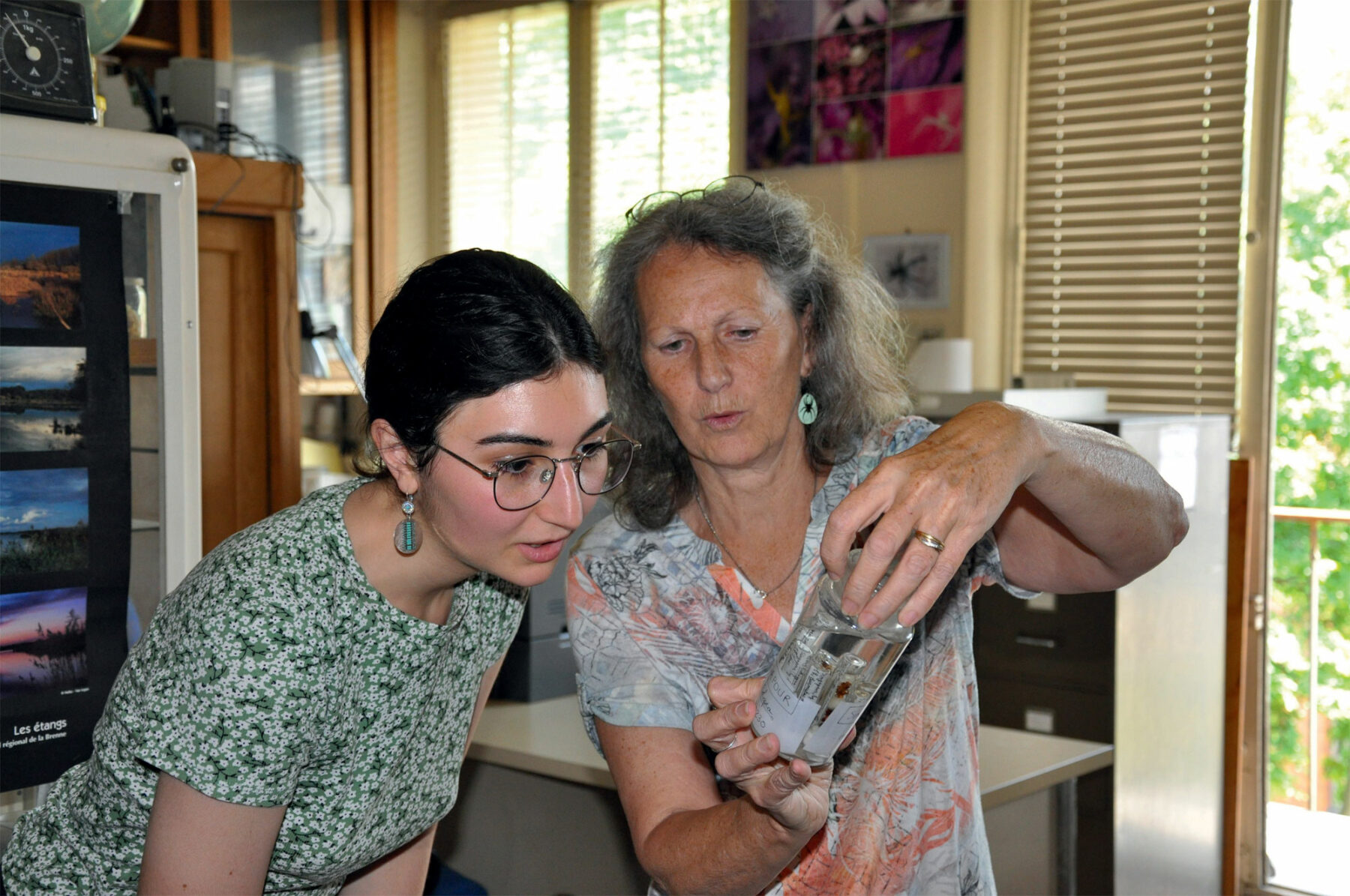 L’étudiante colle prudemment ses yeux contre les deux optiques. « Ouh là ! C’est agressif en tout grand ! », s’exclame-t-elle dans un mouvement de recul. L’arachnologue lui conseille d’être active dans son observation : «Fais bouger les corps dans la boîte de Petri, observe-les. Vois comment sont les deux parties du corps, les pattes… » Cette fois, la scientifique en herbe fait l’effort d’aller à la rencontre de ces êtres si différents des mammifères que nous sommes. « Ah ouais ! C’est marrant de voir leurs yeux de si près. Je ne les imaginais pas comme ça, déclare-t-elle. Ces bêtes sont magnifiques avec leurs jolis dessins, mais je ne vais pas vous mentir, je les préfère mortes. »