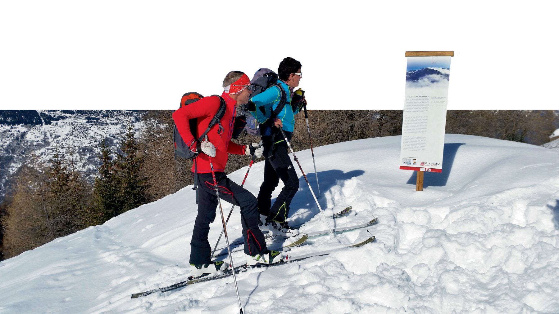 Accompagné d’un guide, on peut rejoindre en peau de phoque ou en raquettes les Becs de Bosson par le vallon de Réchy depuis Nax ou par le pas de Lona depuis Eison en passant par le hameau de l’A Vieille.