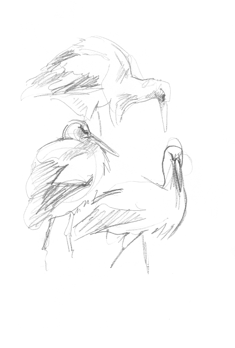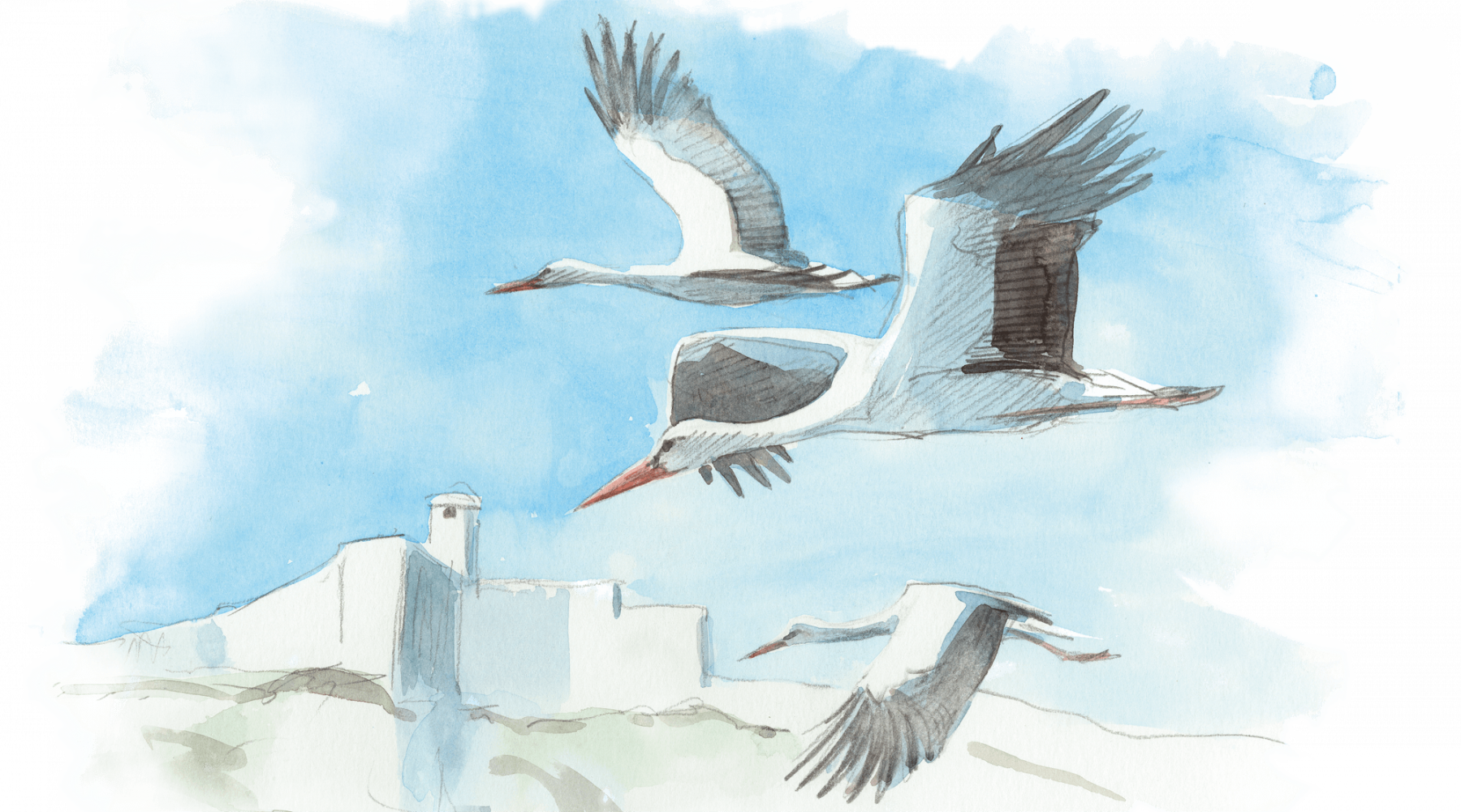 Un vol de cigognes ressemble un peu à un nuage aplati. Contrairement aux oies, aux cormorans et aux autres oiseaux qui voyagent en formation, ces grands échassiers ne dessinent pas de lignes ni de V dans le ciel. Pratique pour les différencier de loin des grues cendrées dans les régions où les deux espèces migrent au printemps. Autre truc : les cigognes ne poussent pas de cris de trompette.