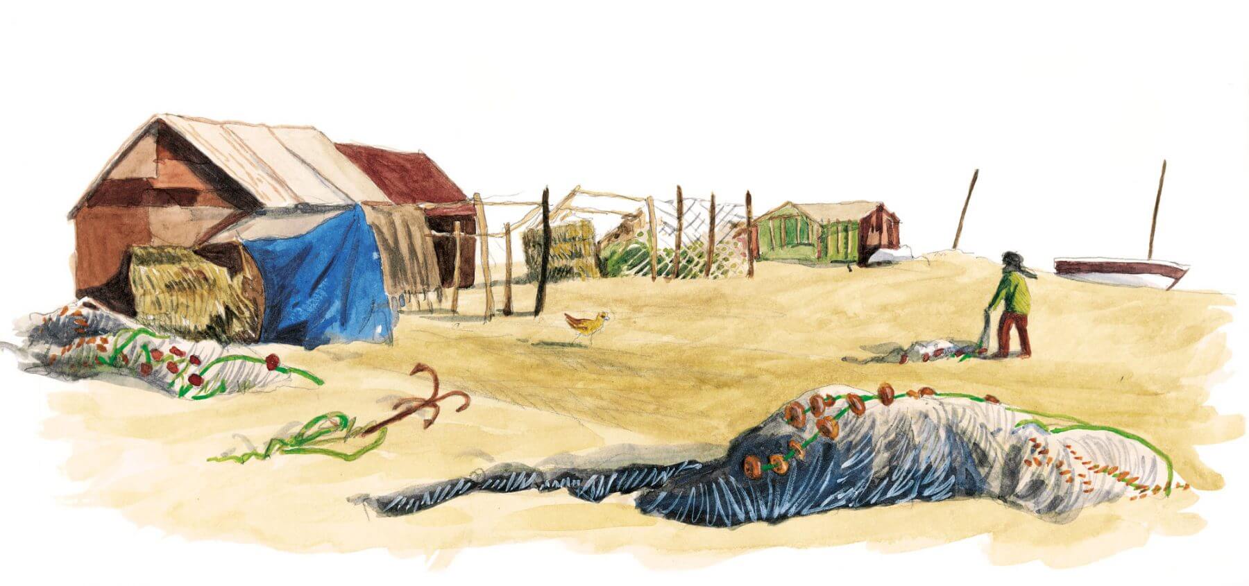 Marée basse. Lumière fraîche du soir. Au loin, l’île d’Echakcher suspendue sur des eaux d’un bleu profond. Ça sent bon le couscous et le mérou offerts par Mohammed, un pêcheur imraguen. Les lanches, barques traditionnelles à voile latine, sont échouées sur le sable. Au village, tous sont affairés à réparer les filets pour la pêche du lendemain. Rires des gamins, chant du grand-duc et cris d’amour du chacal.