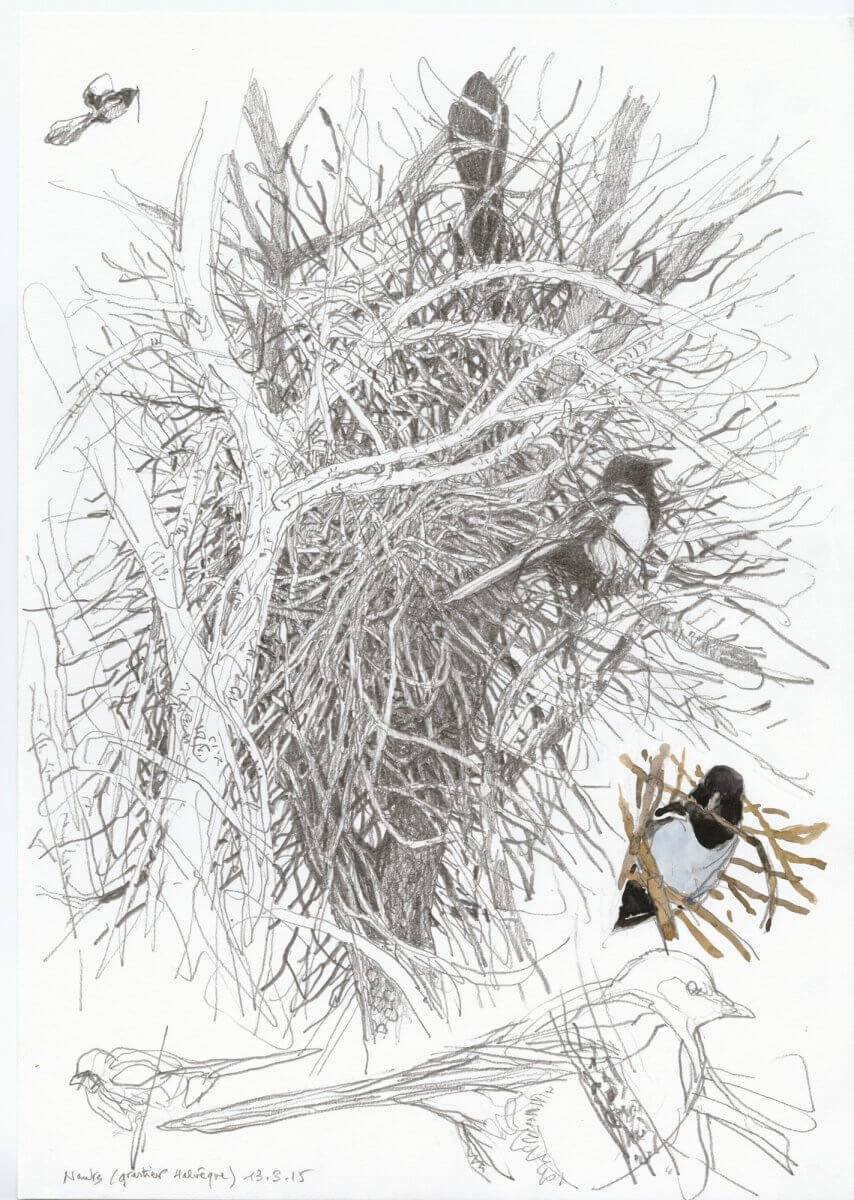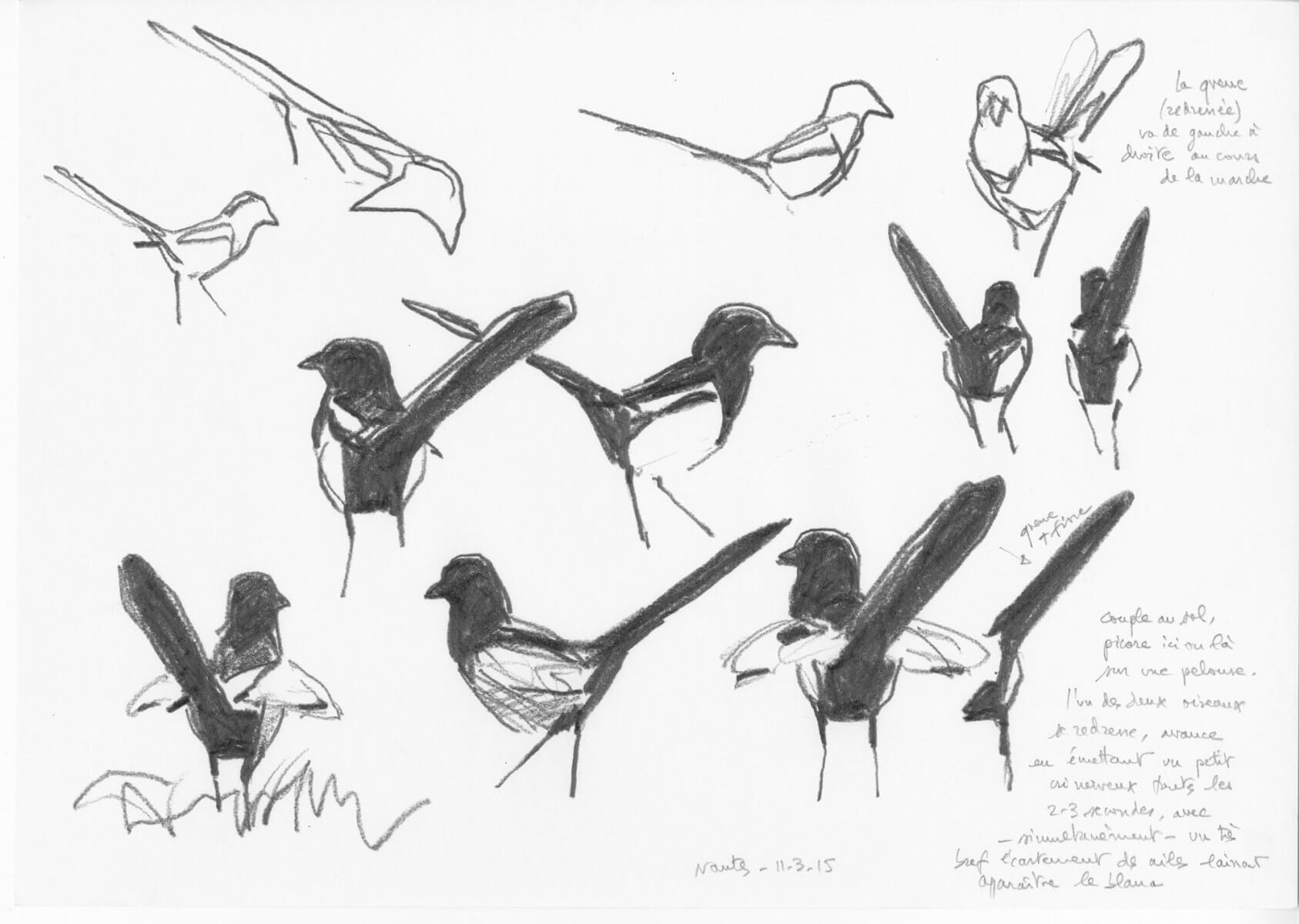 Le peintre naturaliste nantais Denis Clavreul dévoile les coulisses de ses illustrations de pie bavarde. Morceaux choisis.