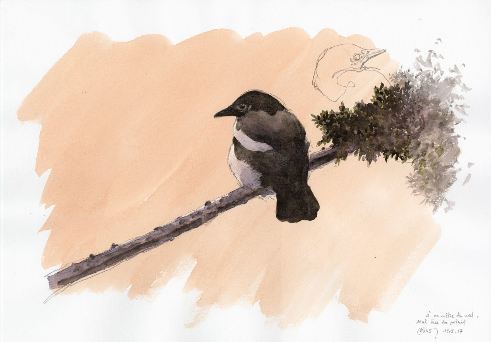 Mandaté par La Salamandre, Denis Clavreul a suivi la pie bavarde au fil de l'année et a documenté son quotidien en réalisant 42 planches illustrées d'une beauté exceptionnelle. Son travail monumental illustre L’affaire pie bavarde, le dossier no. 243 de La Salamandre. L’artiste nous raconte la naissance de quelques uns de ses dessins croqués sur le vif ou en atelier...