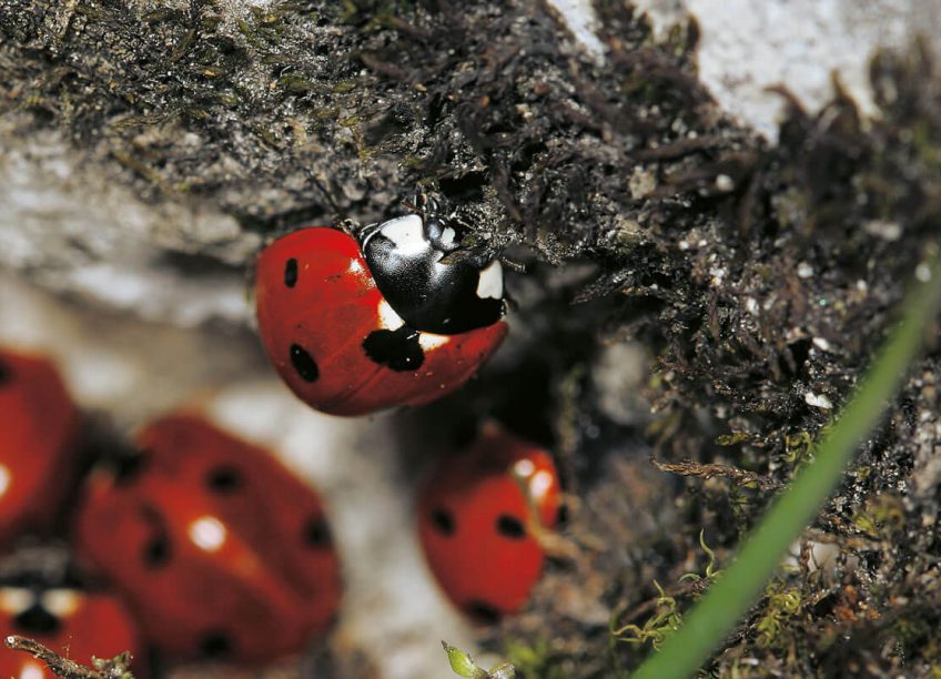 Certaines coccinelles cherchent à rentrer dans les bâtiments pour passer l'hiver au chaud. Celles-ci sont des coccinelles asiatiques. Ces insectes ont été importés en Europe pour lutter contre le puceron, bien que notre coccinelle à sept points consomme aussi beaucoup de pucerons.