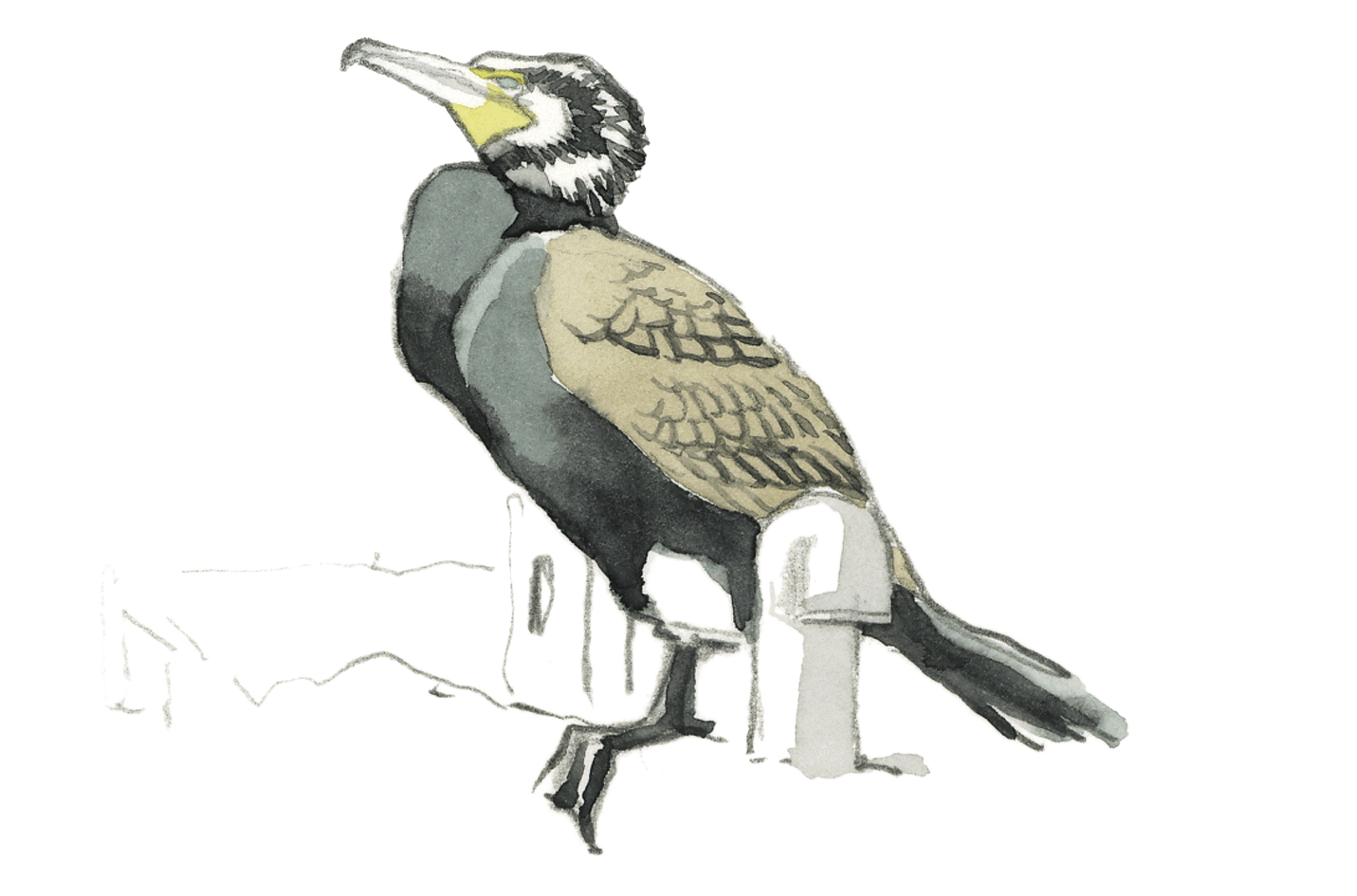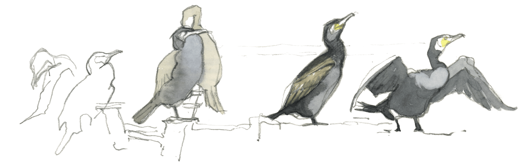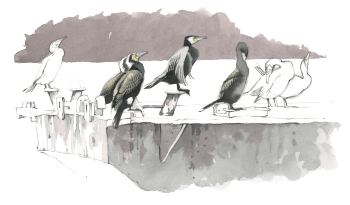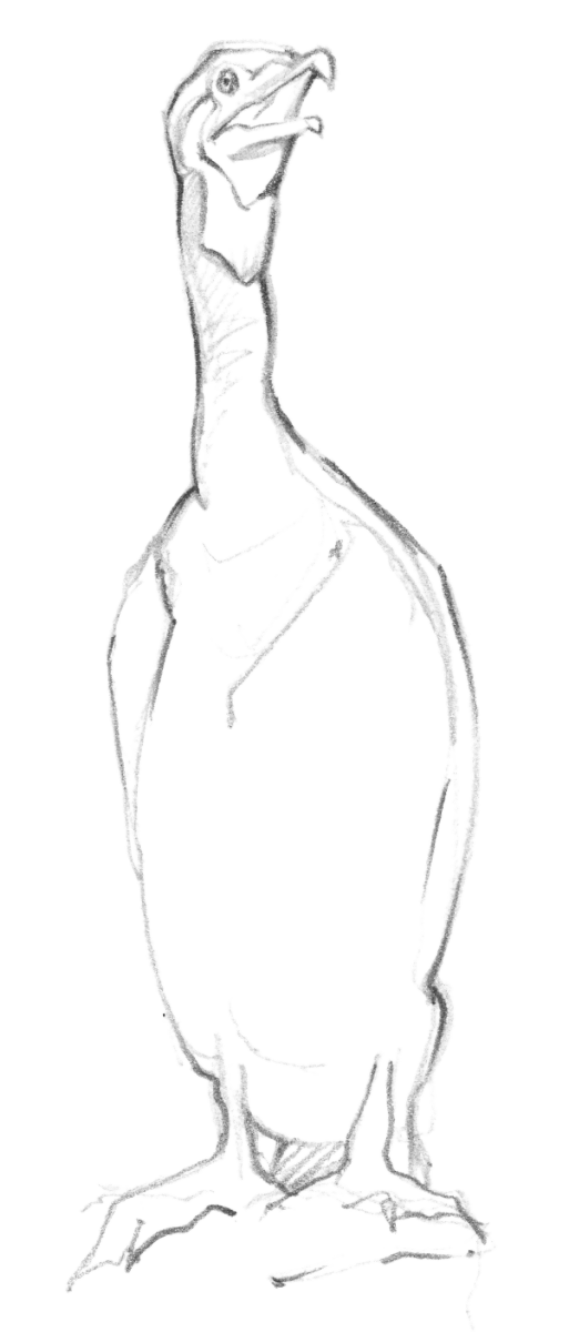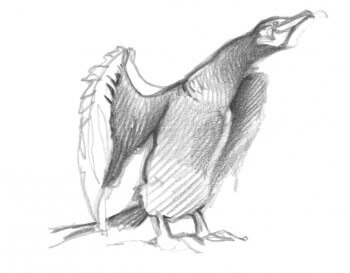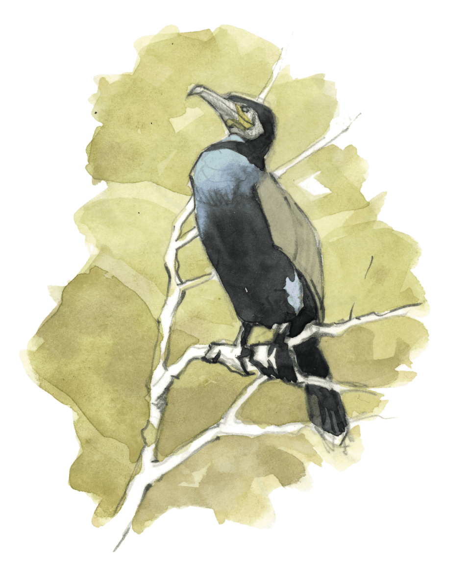 Dans cette posture hiératique, le motif écaillé de ses plumes noires aux reflets verdâtres rappelle plus un dinosaure qu’un oiseau. Le genre Phalacrocorax, auquel appartiennent toutes les espèces de cormorans actuelles, est en effet très ancien. Apparu il y a 40 millions d’années, il descendrait des Hesperornis, des oiseaux aquatiques au bec muni de dents et incapables de voler. C’était eux, les pêcheurs du crétacé… Sauf qu’à l’époque personne ne les qualifiait d’oiseaux de mauvais augure ou de concurrents insatiables.