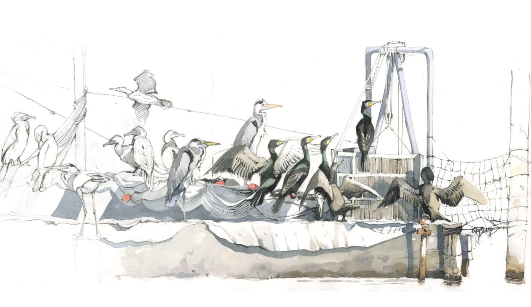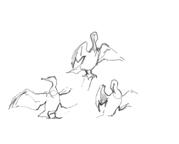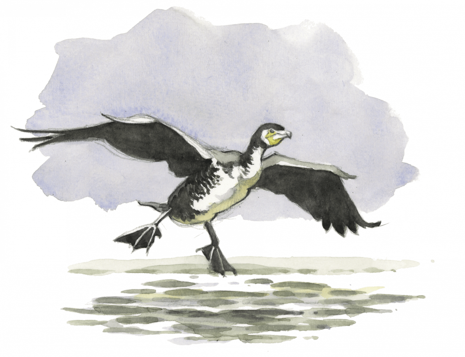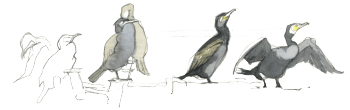 Mais comment fait-il pour voler plumage trempé et ventre plein ? Les décollages qui suivent ses baignades sont laborieux. L’oiseau bat furieusement des ailes et court sur la surface de l’eau pour prendre de l’élan. Une fois qu’il a rejoint un bateau amarré ou une branche, il écarte ses ailes en étendard pour les sécher.