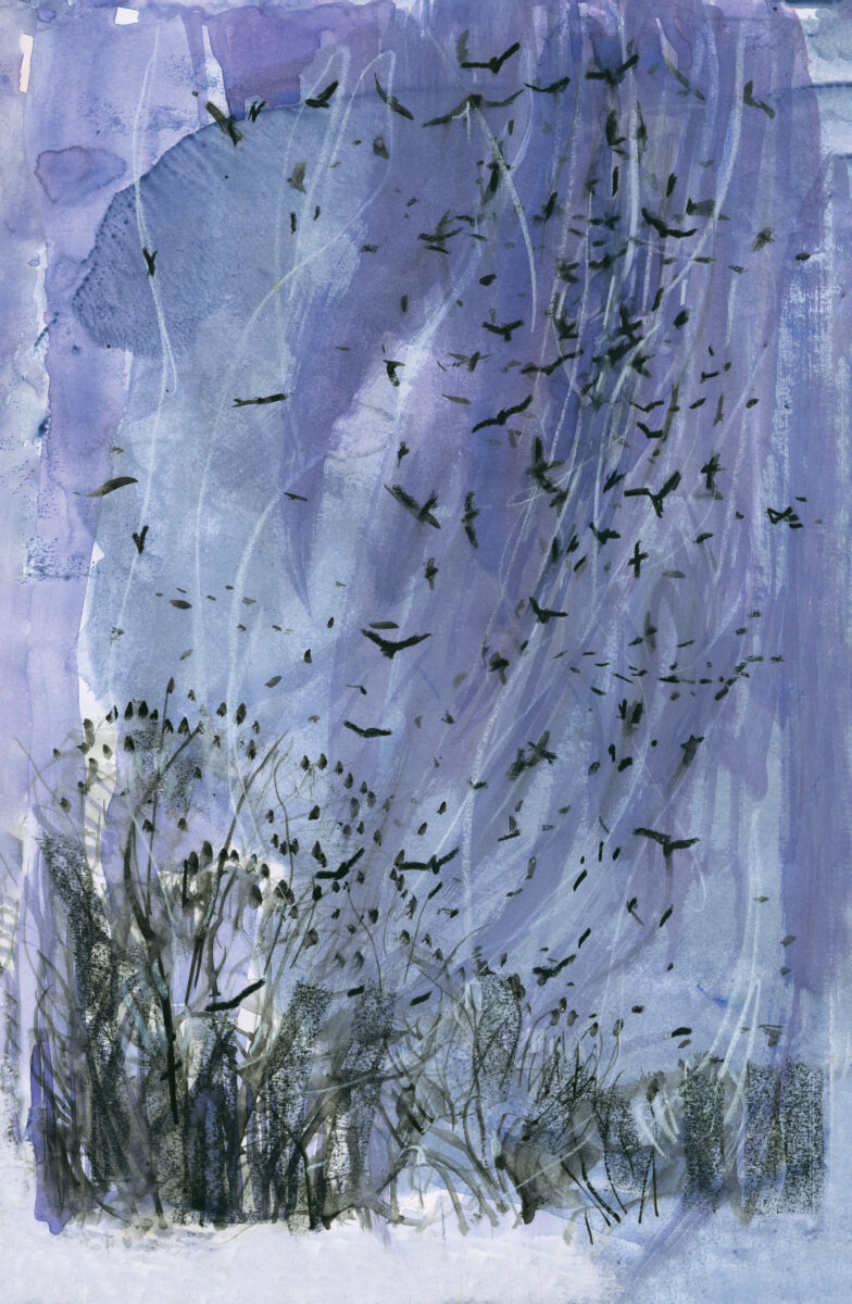 En quelques minutes, le flux continu des oiseaux couvre quasiment tout l’espace disponible. Chaque nouvel arrivant colore de sa robe charbon quelques pixels de ciel encore perceptibles et peint le tableau de la nuit.