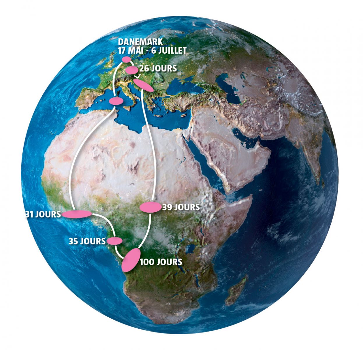 Grâce à des émetteurs satellitaires fixés au dos d’oiseaux scandinaves, on connaît précisément la grande boucle qui les mène jusqu’en Afrique tropicale après une escale au Soudan du Sud, puis la voie du retour par l’Afrique de l’Ouest.