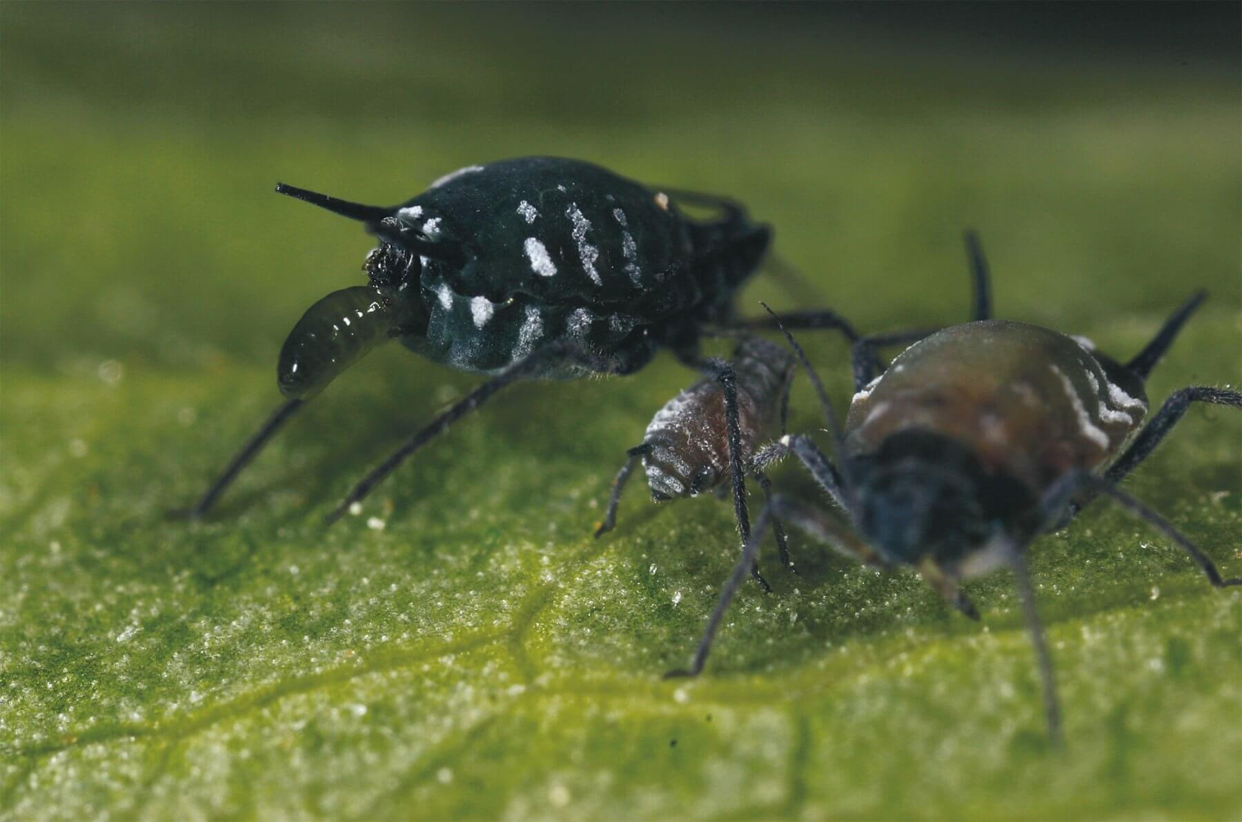 Les pucerons se multiplient à une vitesse phénoménale. Sauf en automne, où femelles et mâles ailés se reproduisent de façon sexuée, tous naissent femelles du ventre d’un unique parent également femelle.
