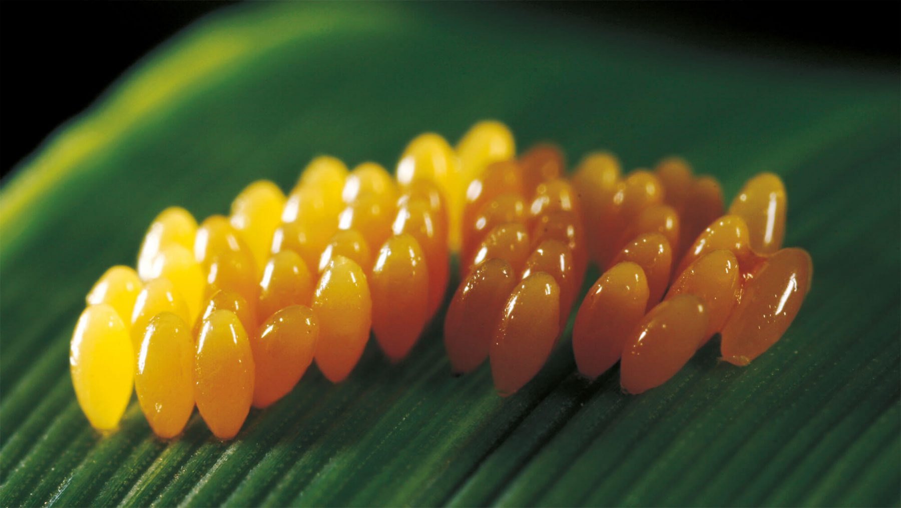 Comment faire pour éviter une telle catastrophe ? Quand elle vole de plante en plante, une femelle coccinelle ne cherche pas seulement à manger. Ses prospections ont pour but de repérer une jeune colonie de pucerons en démarrage. Pas trop jeune tout de même, car les proies trop peu nombreuses seraient difficilement repérées par ses larves. Pas trop vieille non plus, pour que le cycle soit bouclé avant que la colonie ne s’effondre. La marge de manœuvre est étroite : il faut viser une colonie âgée d’une à deux semaines. Et surtout ne pas déposer trop d’œufs, au risque que les larves éradiquent prématurément leurs proies. Enfin, dernier souci : s’assurer qu’aucune autre ponte ou larve, qu’aucun relief de festin ne traînent dans les parages, sous peine que sa propre descendance finisse dévorée par des larves plus âgées.