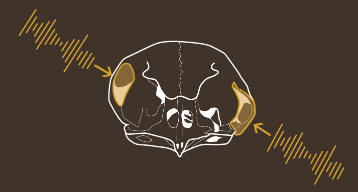 C'est la puissance d'amplification des sons produite par le disque de plumes qui recouvre la face de la Tengmalm. Cette antenne parabolique concentre les ondes sonores vers les organes auditifs situés derrière l'œil. Une modification du squelette oriente le conduit auditif gauche vers le bas et le droit vers le haut. Ainsi, même dans la nuit la plus noire, les proies sont localisées par analyse des différences de temps et d'intensité sonore reçus par les deux oreilles. La chevêchette dépourvue de ce dispositif est incapable de chasser de nuit, sauf par bonne lune.