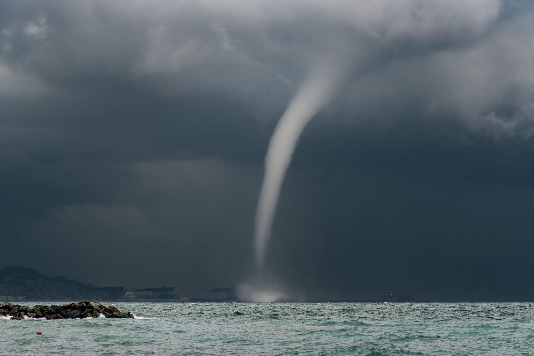 Délaissant les vols transatlantiques polluants, j’arpente désormais les terres qui ont fait naître mon étrange passion, en cherchant en quelque sorte à retrouver la madeleine de Proust de mon enfance. Une madeleine foudroyante qui peut se montrer à la fois belle, colérique et impitoyable, mais qui impose toujours respect et humilité. En attendant de réussir le cliché parfait d’une tornade sur le Léman ou le lac de Constance, je vous partage cette image d’une trombe marine qui a touché terre un matin d’août 2014 en Ligurie. Elle n’a heureusement pas causé de dégâts. Que des émotions.