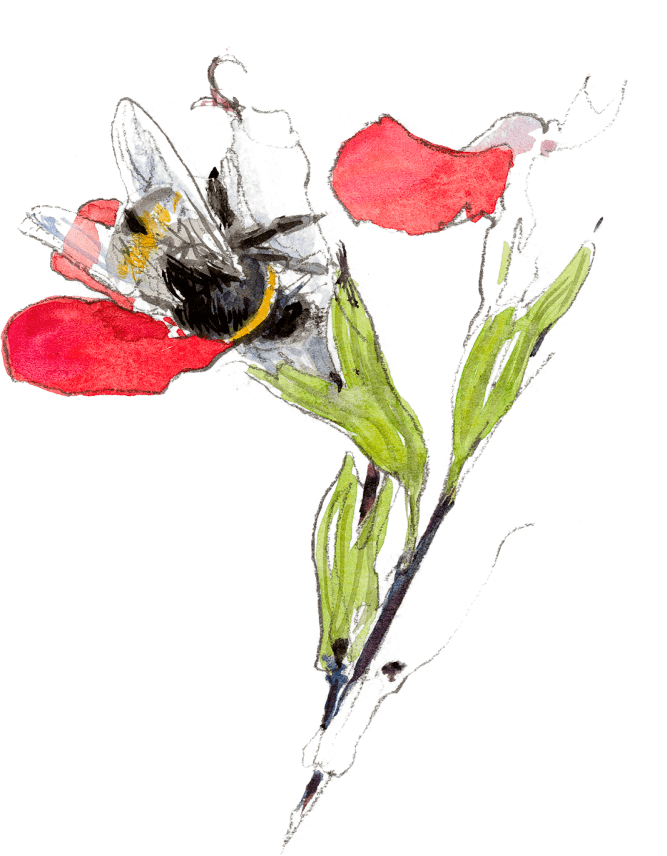 Les plantes et les abeilles évoluent ensemble depuis cent millions d’années. La fleur ne sert à rien d’autre qu’à attirer un véhicule qui transporte sa semence appelée pollen vers d’autres corolles de la même espèce. Ses couleurs, ses odeurs, ses formes parfois extravagantes séduisent et fidélisent l’insecte. Toutes les astuces sont bonnes pour le barbouiller de pollen et lui donner envie de revenir.