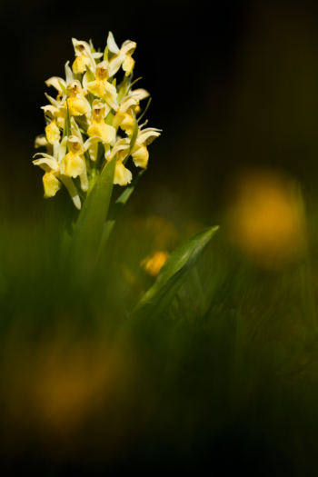 Ah les parterres d’orchidées violettes et jaunes de montagne... un rêve éveillé ! En y regardant bien, on remarque des fleurs très semblables par la forme, mais différentes par la couleur. Un tour de magie de plus qui illustre la diversité génétique de l’orchis sureau. L’arnaqueuse ne sert pas de nectar à ses butineurs, ils resteront à l’eau. Alors à force, voyez, on se passe le mot et on ne visite plus l’établissement. Pour remédier à ce boycott, la fausse barmaid a trouvé une tactique. En se présentant ici en habit violet et là en jaune pâle, elle brouille les pistes. Les clients ailés désabusés par l’enseigne d’une certaine teinte se rabattent sur le comptoir d’une autre, mais restent quand même sur leur faim. Et la dactylorhize – de son autre nom – gagne quant à elle à presque tous les coups.