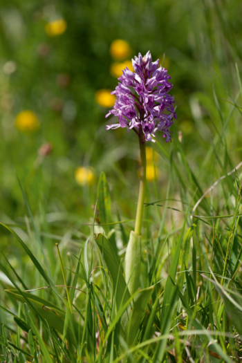 Dans la brigade des orchis, tout repose sur l’attirance d’un partenaire ailé. Point d’autofécondation dans les rangs. À l’instar de l’orchis sureau, l’orchis militaire attire ses pollinisateurs à l’odeur. Les coléoptères, tels les cantharidés ou les taupins, et les hyménoptères, comme les ichneumons, répondent à l’appel. En outre, les touffes de poils du labelle stimulent les soies abdominales de certains insectes destinées à détecter les substances sucrées. Le nom militaris vient de la partie supérieure de la fleur en forme de casque, et du labelle à la découpe anthropomorphique. Une caractéristique partagée par d’autres espèces du même régiment, comme l’orchis singe ou l’orchis homme-pendu.