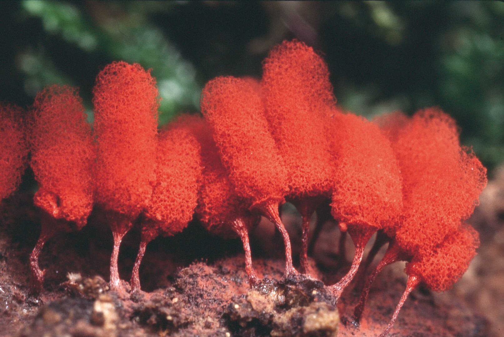 Poires au vin, morilles bleues et perles de cuivre : le délire esthétique des myxomycètes explose de variété quand il est temps de fructifier.
