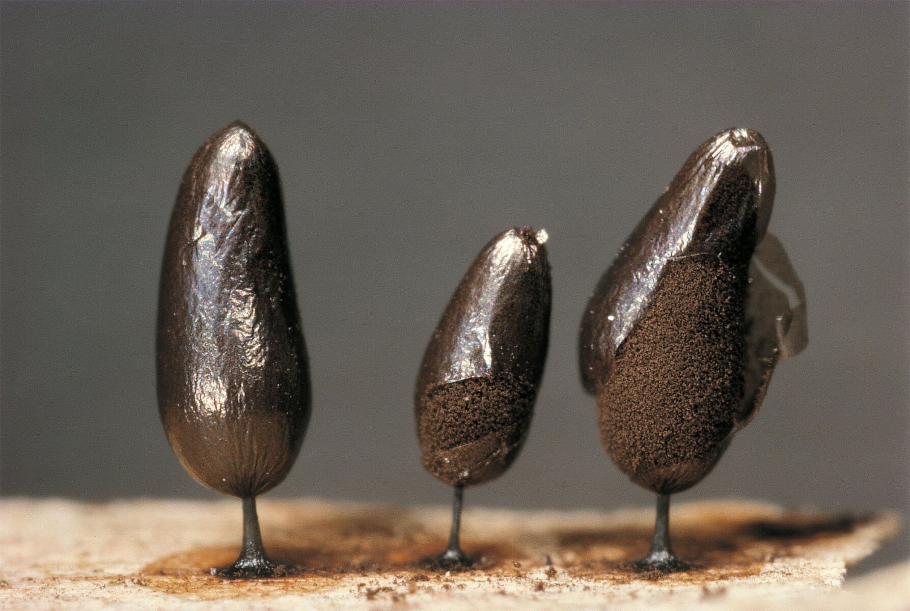 Ces pièces montées magnifiques changent de forme, d’éclat, de reflets et de teintes au fur et à mesure de leur maturation. Souvent, elles finissent par se fendre : leur enveloppe s’ouvre ou même explose en un feu d’artifice vital. Le voyage des spores peut commencer. Il pourrait mener bien plus loin qu’on l’imagine…