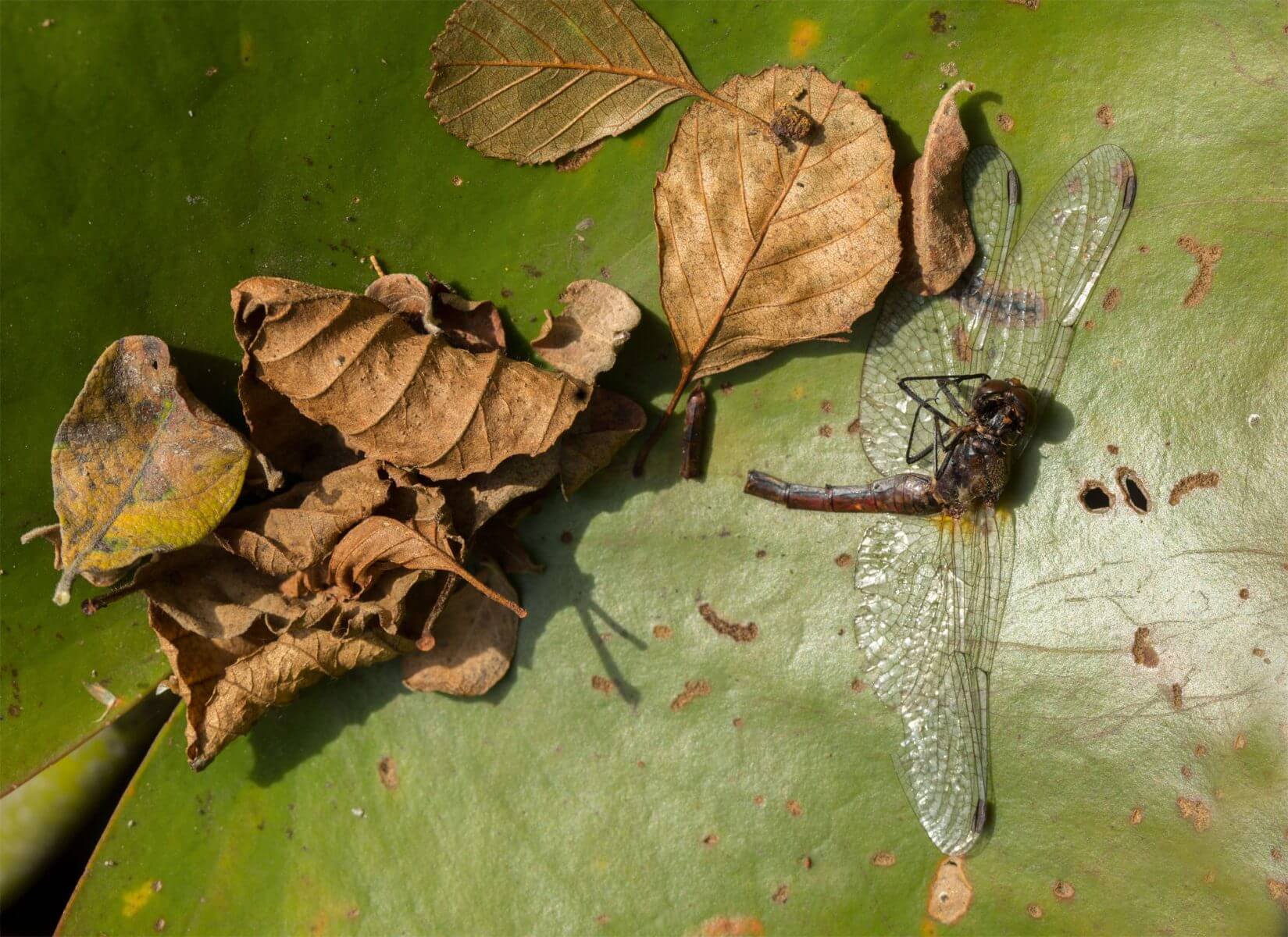 Au fil des semaines, toutes les libellules entrent progressivement en scène. Mais aux premiers signes de la fin d’été, beaucoup d’entre elles ont déjà succombé après avoir pondu. Quand arrive septembre, l’amoureux des libellules sait qu’il n’en croisera dorénavant plus beaucoup. Il lui reste encore à s’émerveiller jusqu’à mi-novembre du somptueux bouquet final de la saison : la ponte des sympétrums.