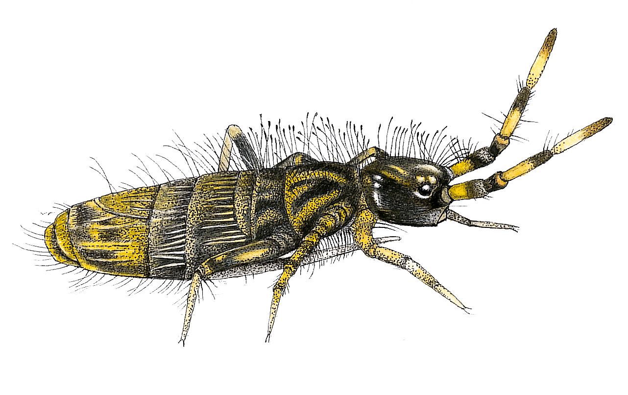 Cousins miniatures des araignées, les acariens se reconnaissent à leurs 8 pattes et à leur corps souvent rond ou bouffi. Les uns, aux mouvements plutôt lents, sont des oribates. Ces herbivores broutent les mousses ou la pellicule d’algues et de champignons qui les tapisse. D’autres, aux mouvements plus rapides et au profil plus effilé, sont des prédateurs prostigmates ou mésostigmates. Quant aux collemboles, arthropodes primitifs, ils sont dépourvus d’ailes mais capables de sauts spectaculaires grâce à un crochet à ressort replié sous leur corps.