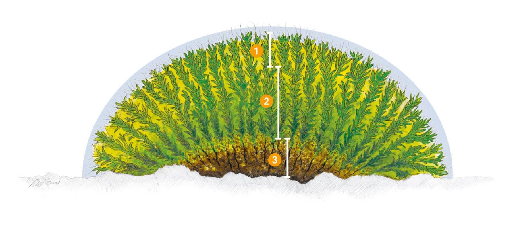 - Canopée poilue qui piège les poussières, pollens et limons, la surface de la mousse est la partie qui se dessèche le plus vite. Quand l’eau disparaît, ses habitants s’enfoncent dans le coussin végétal ou se mettent en veilleuse.