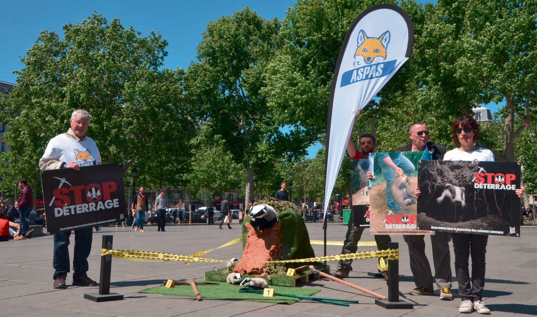 L’ASPAS a choisi le 15 mai, date d’ouverture de cette pratique d’un autre âge, pour alerter l’opinion publique à Paris. Simulant les actes cruels sur des blaireaux factices, les militants ont attiré l’attention des nombreux curieux et distribué leurs tracts et appels à soutien.