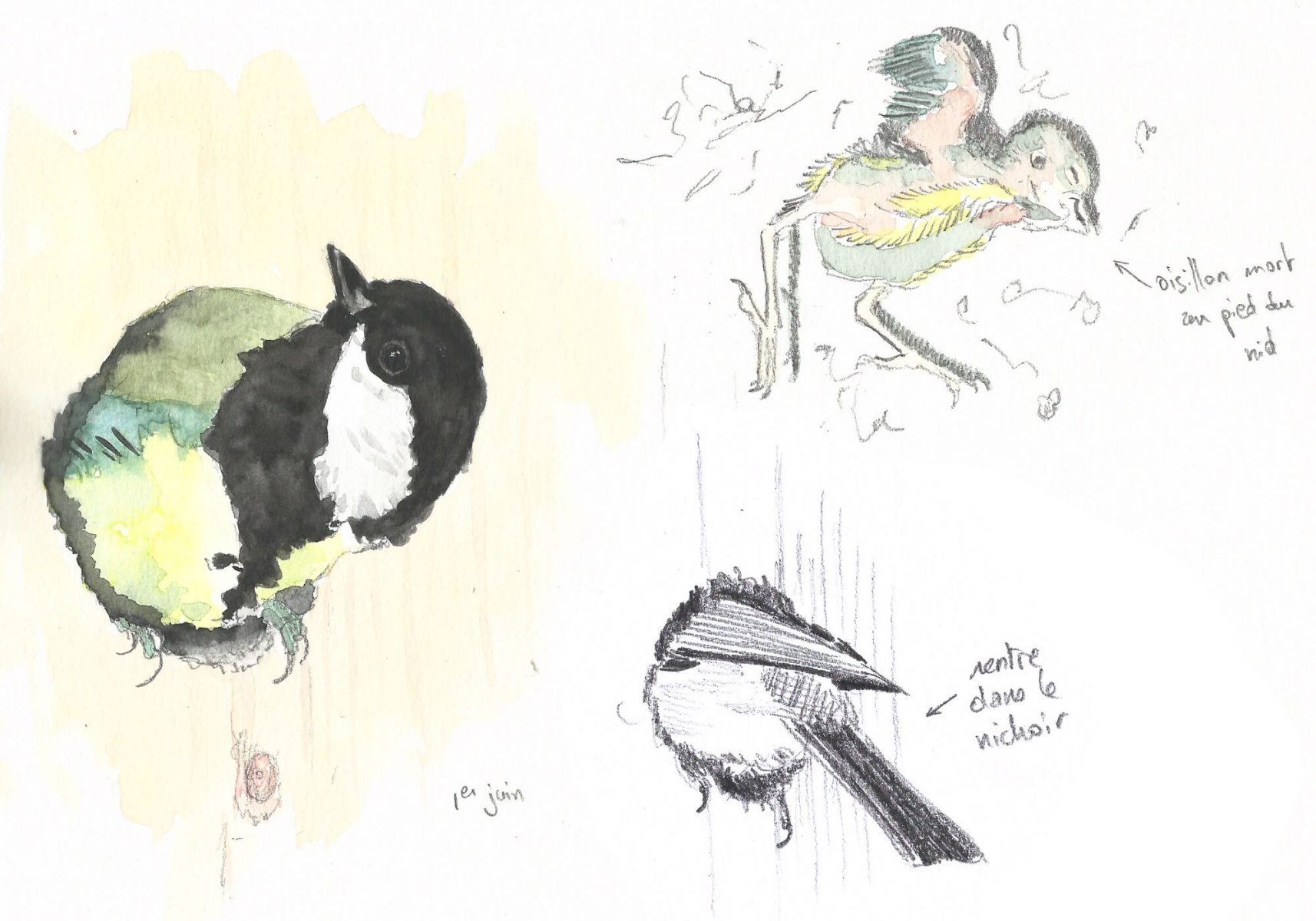 "Oh le pauvre, c'est injuste !"... La réaction des enfants est spontanée et je pense qu'elle est universelle devant le corps sans vie d'un bébé oiseau tombé du nid. Alors que nous évoquons la tristesse supposée des parents mésanges et les conséquences de ce fait divers très local, je sens comme une incompréhension générale quand je prononce ces quelques mots maladroits : "c'est normal, c'est prévu".