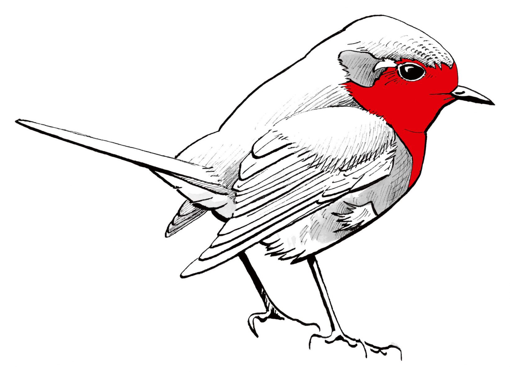 Après la réconfortante fondue, j'appréciais le spectacle du jardin en sirotant un thé au lait, le rideau un peu tiré pour ne pas effrayer les oiseaux. Il ne neigeait plus. La désertion du matin n'avait pas duré et les passereaux étaient plus nombreux que la veille. Mésanges, merles, pinsons, sittelles... Même la discrète mésange huppée aperçue il y a une dizaine de jours se trouvait là, à picorer dans la neige le tournesol éparpillé par les verdiers. Heureuse de son retour, je consignai sa présence dans le petit carnet relié sur lequel je notais mes observations. Tout en écrivant et en agrémentant le texte de croquis, je réalisai qu'il manquait un oiseau à l'appel. Pas n'importe lequel : ce rougegorge était mon préféré. J'appréciais sa présence, sa personnalité, sa fidélité. Chaque jour, je le voyais vaquer à ses occupations. Tantôt en pleine vocalise, posté sur le sureau, tantôt en maraude au pied de la haie, ou encore affairé à retourner vigoureusement le compost à la recherche d'insectes ou de vers. Je pouvais facilement le repérer entre tous grâce à son plumage particulier. En bas de sa poitrine orangée, une tache blanche prononcée attirait l'attention. De plus, une marque claire derrière l'œil lui donnait l'air maquillé.