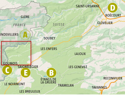 A) Tout Doubs L'excursion proposée s'inscrit dans le périmètre du Parc naturel régional du Doubs. Biodiversité, paysages karstiques, hauts marais, pâturages boisés où paissent vaches et chevaux des Franches-Montagnes… Autant de possibilités pour prolonger le séjour dans la région !