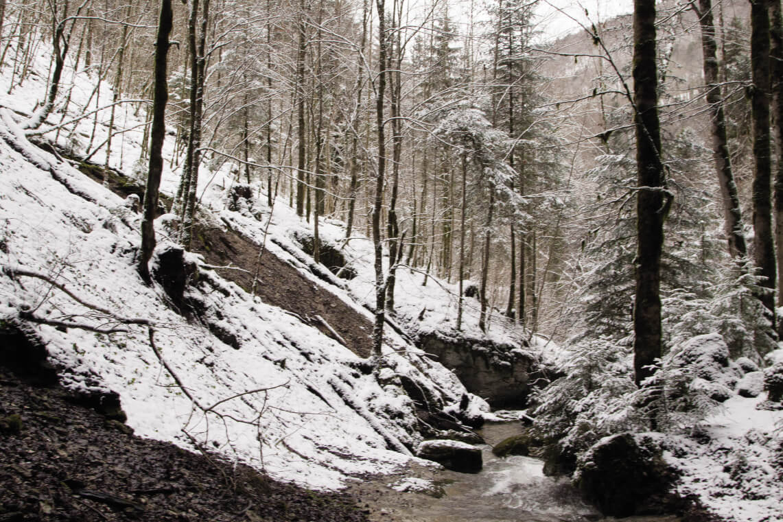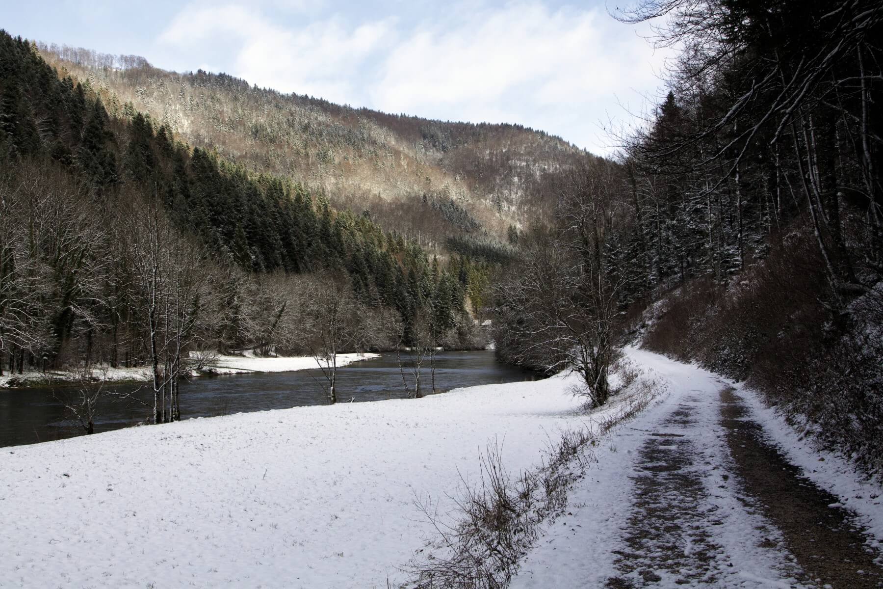 Une ribambelle de mésanges à longue queue danse avec les flocons. De nombreux troncs morts se tiennent encore debout malgré l'assaut des pics : des chandelles qui célèbrent la biodiversité ! Pas après pas, le murmure d'un cours d'eau défie de plus en plus le silence blanc de l'hiver. Enfin le Doubs !