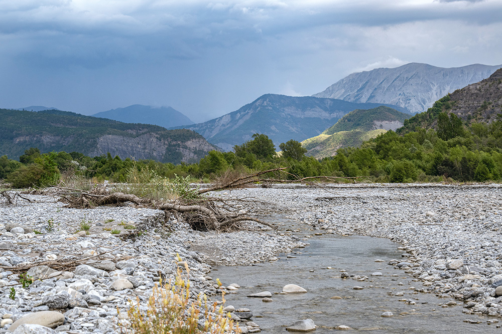 Ce jour d’août, dans la fournaise estivale de la Haute-Provence, l’eau est rare et l’environnement très minéral.