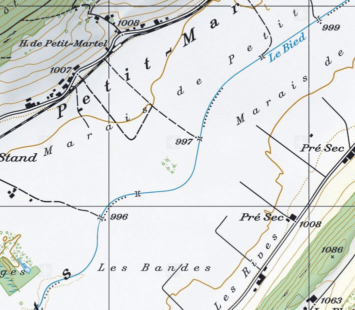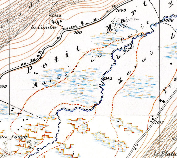 Découvrez en images l'évolution d'un petit bout de campagne exemplaire de l'assèchement complet des paysages de Suisse et de certaines régions de France. Cette modification radicale est complètement sous-estimée parce que le réseau de drains (en bleu sur la carte du milieu ci-dessous) est invisible et méconnu. Mais son influence sur le niveau des nappes phréatiques est énorme.