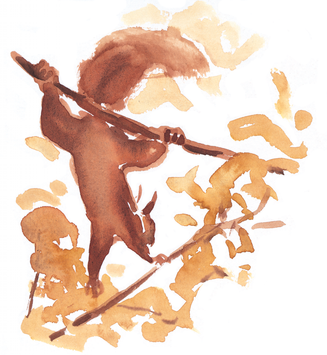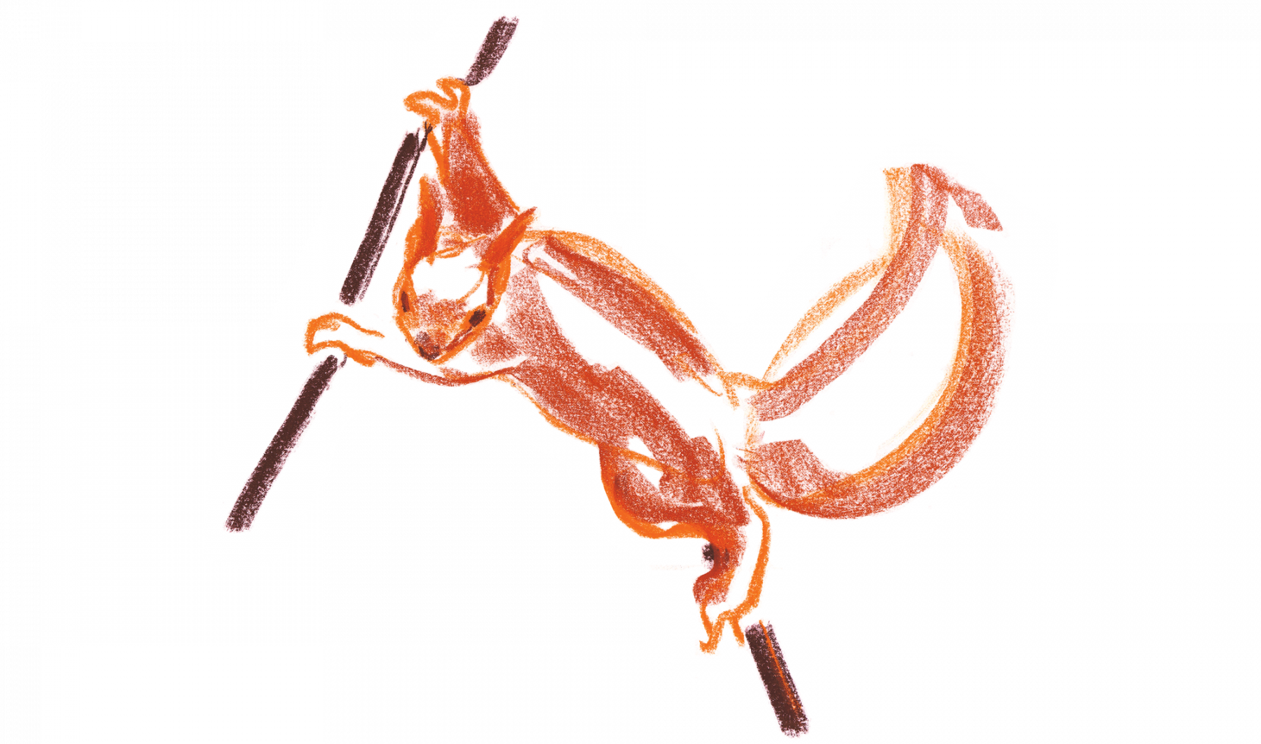A l’instar de la chauve-souris dans la nuit noire, l’écureuil emprunte chaque jour les mêmes voies suspendues. Il s’aventure sur les mêmes branches, s’agrippe aux mêmes écorces, calcule les mêmes sauts. Il connaît les meilleurs raccourcis pour aller boire, manger, dormir, ou pour semer ses poursuivants. Si d’aventure il perd l’équilibre et chute au sol, dix à vingt mètres plus bas, il retombe toujours sur ses pattes, comme un félin. A peine étourdi, il rejoindra dare-dare ses frondaisons.