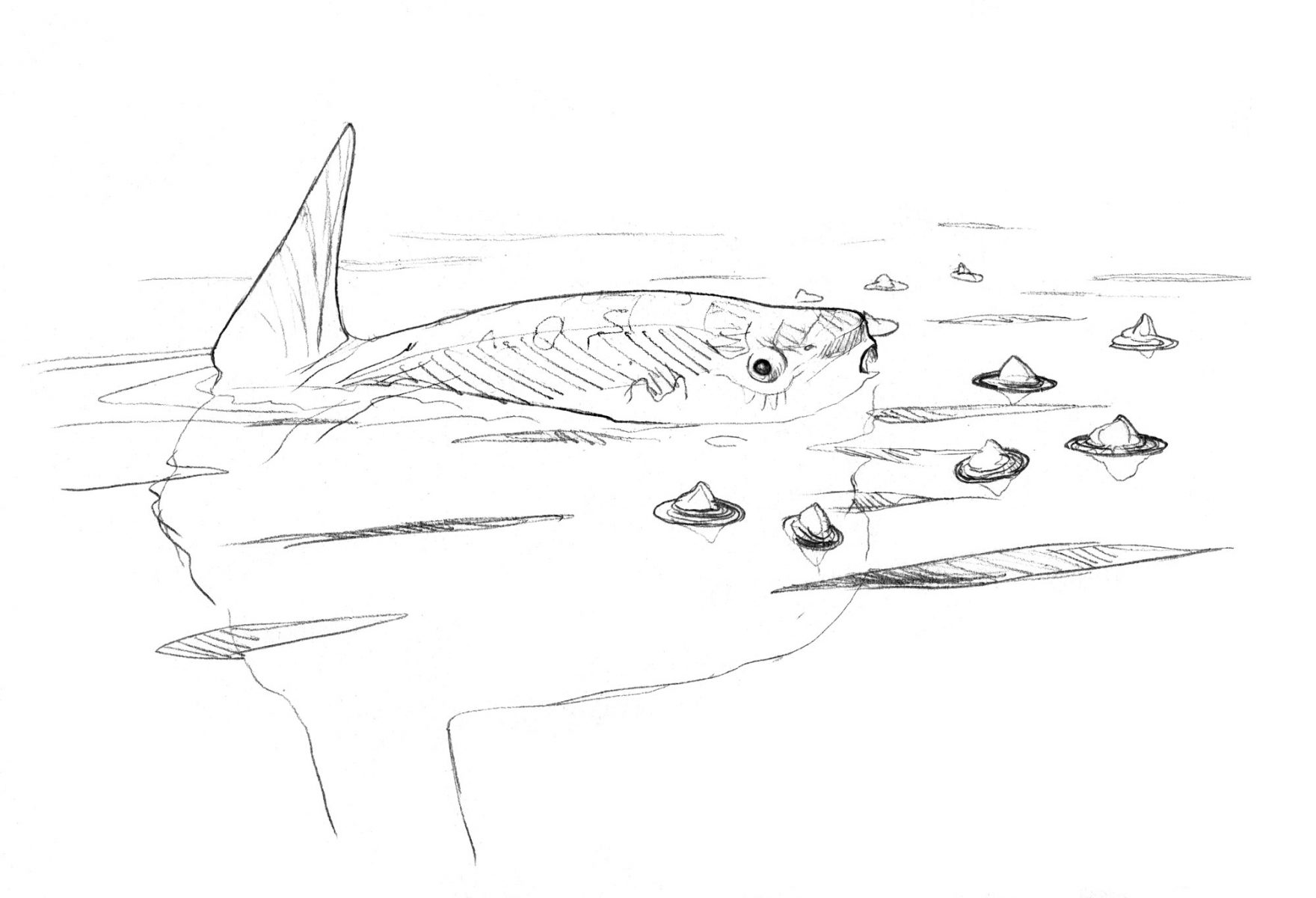 Dessins NatureLes poissons satellites qui accompagnent le poisson-lune