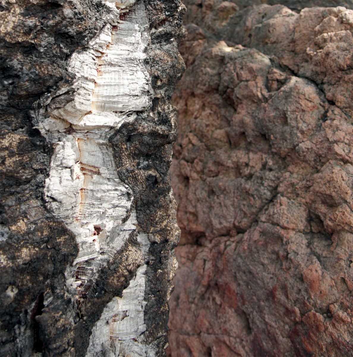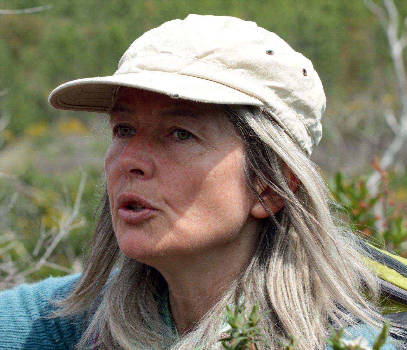 Le sentier amorce la descente et quitte les vasques rocheuses et leur végétation miniature. Au pied de la colline apparaissent des veines de roche couleur chocolat. Marjorie les caresse du bout des doigts. « C’est de l’argile pétrifiée ou argilite. Cette roche soyeuse indique la présence d’une ancienne zone humide ou d’un lac de faible profondeur à l’époque du Permien, c’est-à-dire il y a presque 300 millions d’années. »