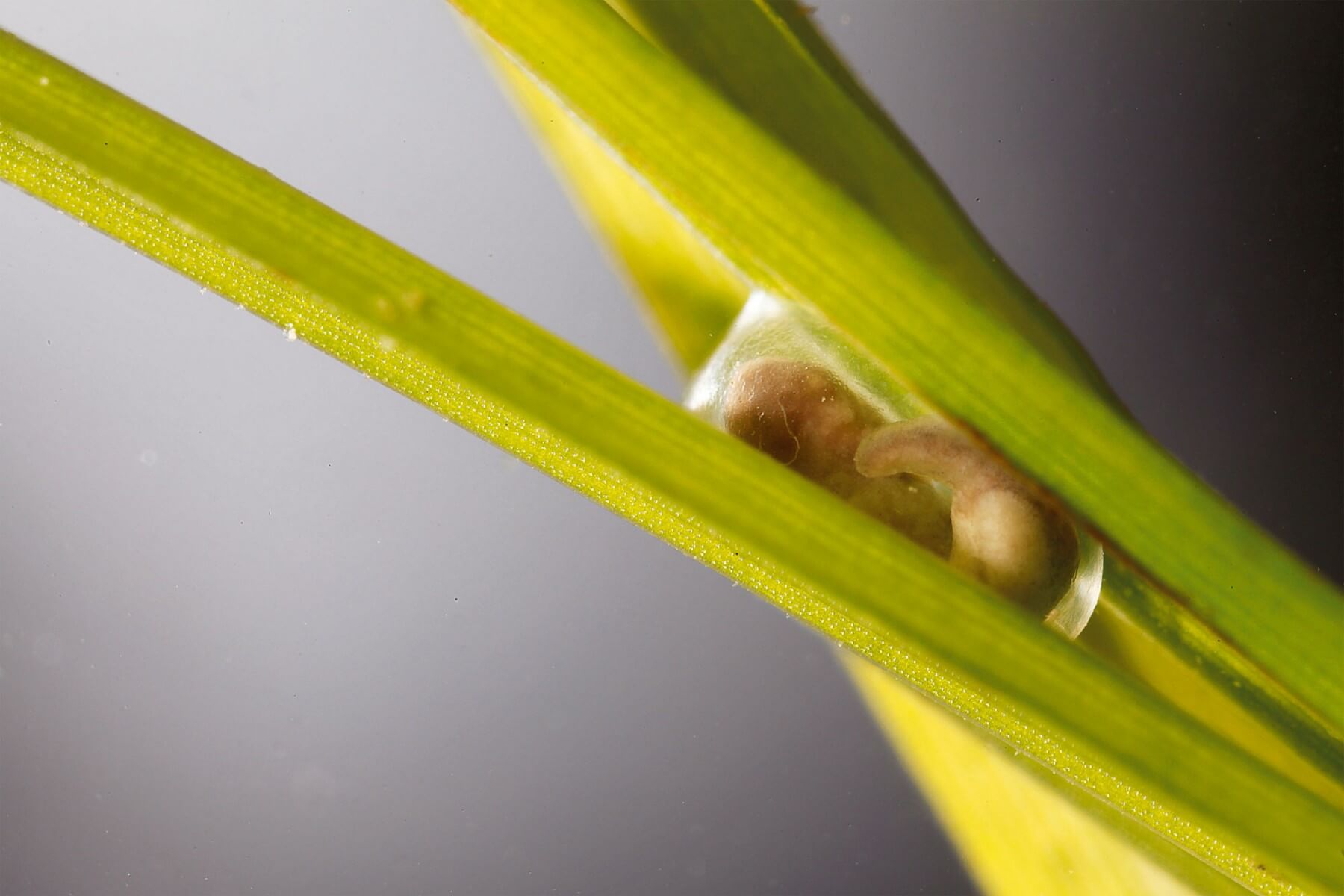 Chez les tritons, pas question d'abandonner ses œufs par milliers à tout va comme les crapauds ou les grenouilles. En avril, quand l'eau atteint une température franchement agréable, les femelles se livrent à un jeu de cache-cache discret. Suivons des yeux cette belle tritonne aux flancs rebondis. Elle a certainement eu le temps de cueillir la semence d'un ou plusieurs mâles.