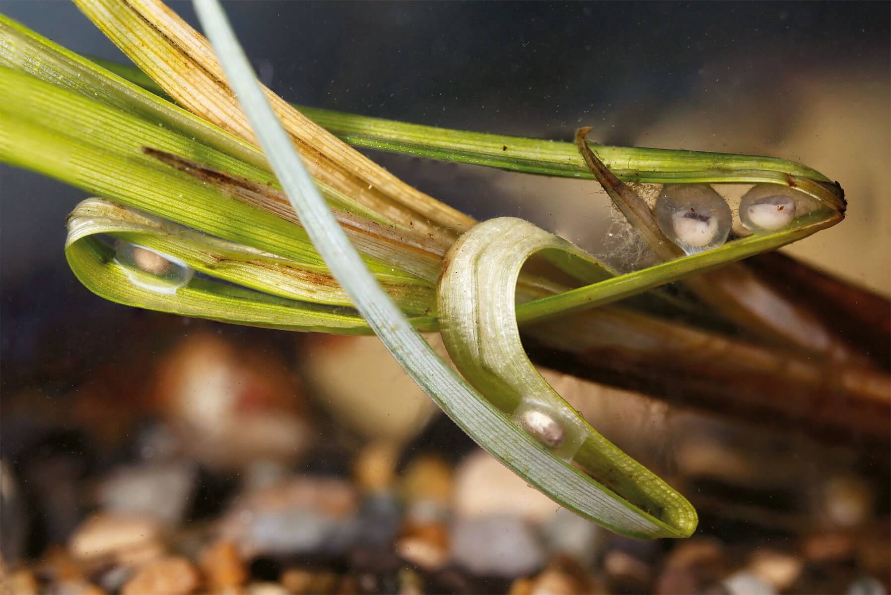 Malgré le soin avec lequel les œufs sont dissimulés, les jeunes tritons risquent gros. Gloutons, ils sont aussi très goûtés.