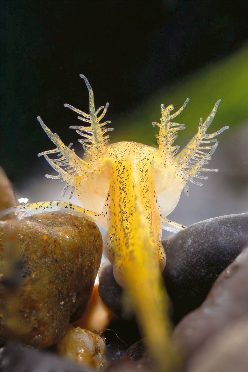 Dans ces conditions, les larves mettent parfois plusieurs années avant de sortir de l'eau. Dans certains lacs d'altitude du sud des Alpes et des Balkans, une partie d'entre elles renonce totalement au mode de vie terrestre.