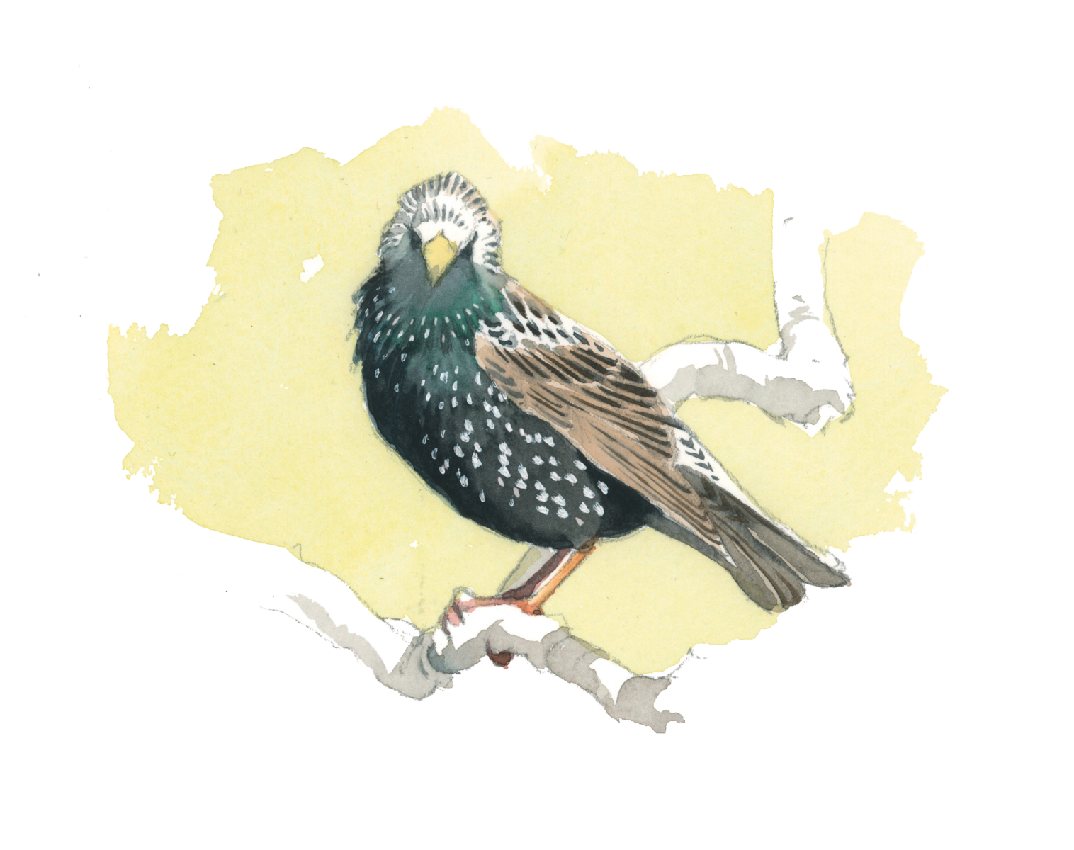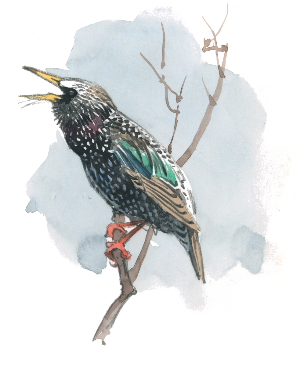 Le lendemain, en milieu de matinée, mon voisin l’étourneau bavard est de nouveau posté. Depuis l’antenne du toit, son perchoir préféré, il enchaîne babil d’hirondelle rustique, cri de guêpier et autres grésillements électriques. Il paraît que plus les individus partagent des sons en commun, plus leurs liens sociaux sont étroits. A tel point que cette culture vocale commune s’apparente à un dialecte qui permet d’identifier une sous-population distincte d’étourneaux. Je me promets de faire le tour du quartier ce printemps pour tenter de déceler d’éventuelles similitudes dans les différents répertoires.